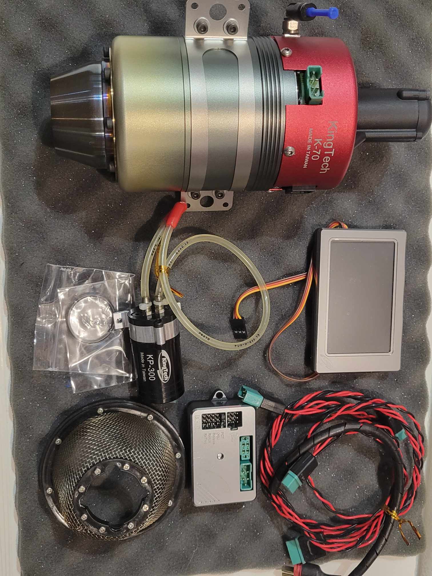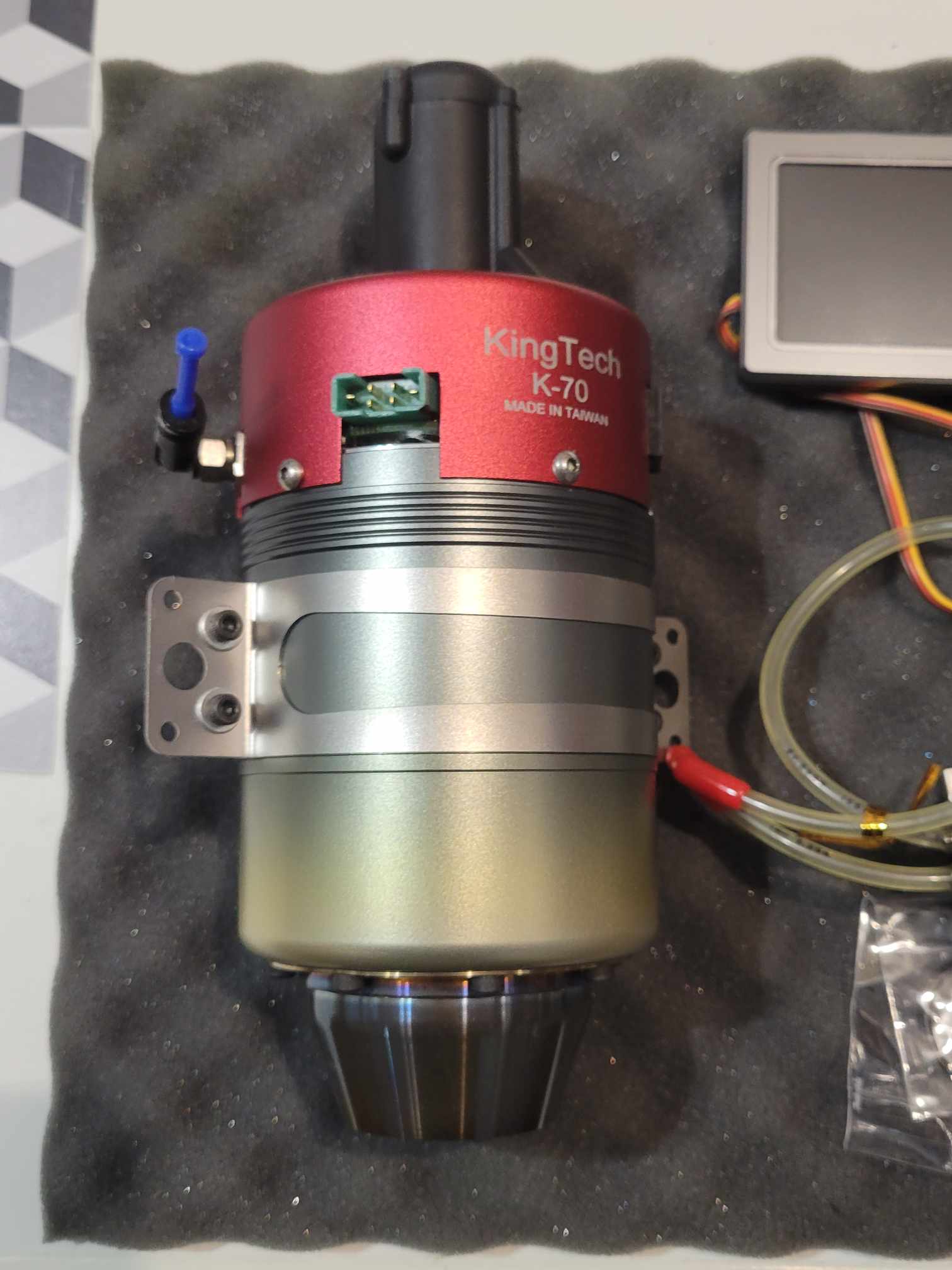 Vends turbine Kingtech K70 G2 un peu moins de 9h (535mn) , cause trop petit pour le nouveau projet. Très bon état avec GSU, ECU, FOD, Pompe, cablage , notice .