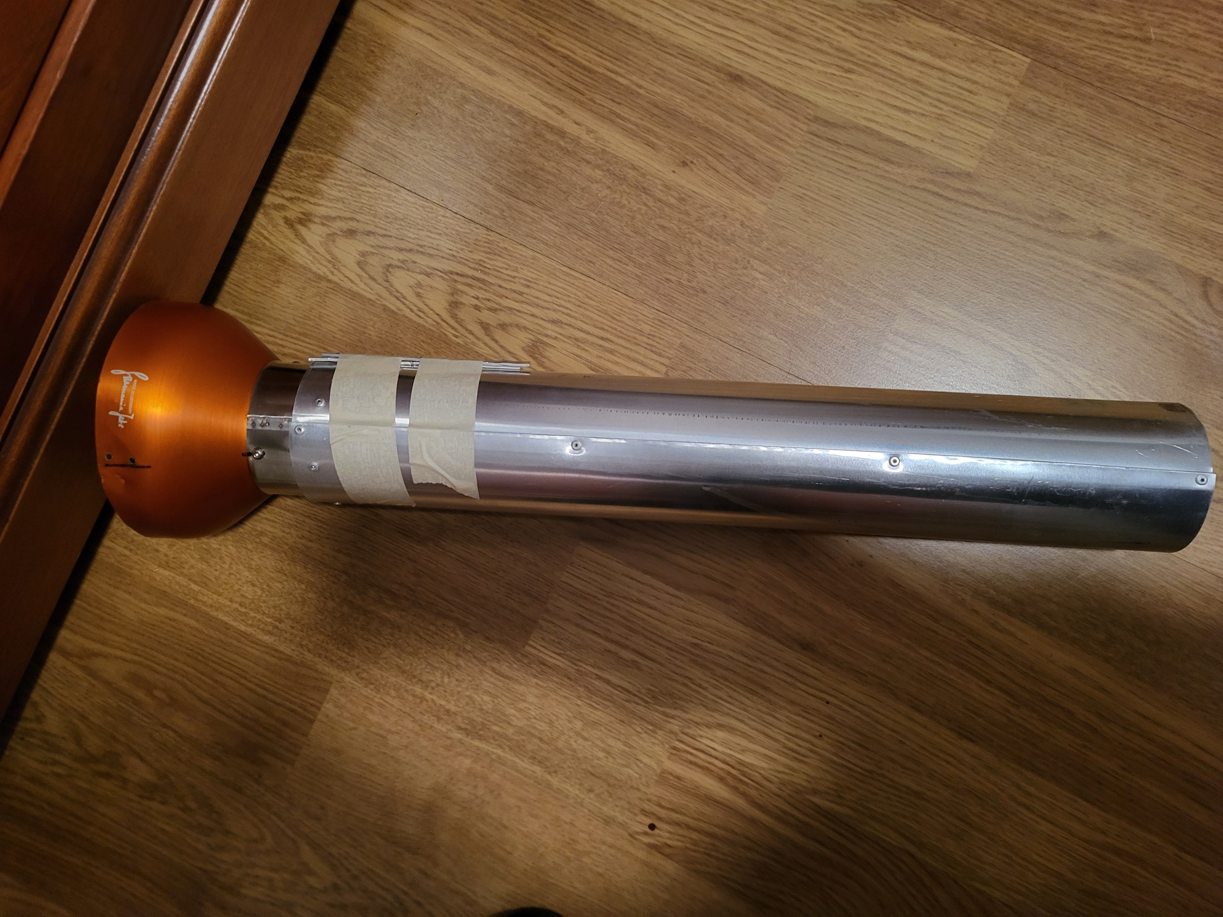 Vends tuyère Grunmania pour réacteur 7-8 kg. Elle était sur un Avanti Sebart avec une K70. Longueur totale avec la partie orange 48 cm. Diamètre extérieur 70 mm, intérieur 65. Diamètre de la partie orange 113 mm environ