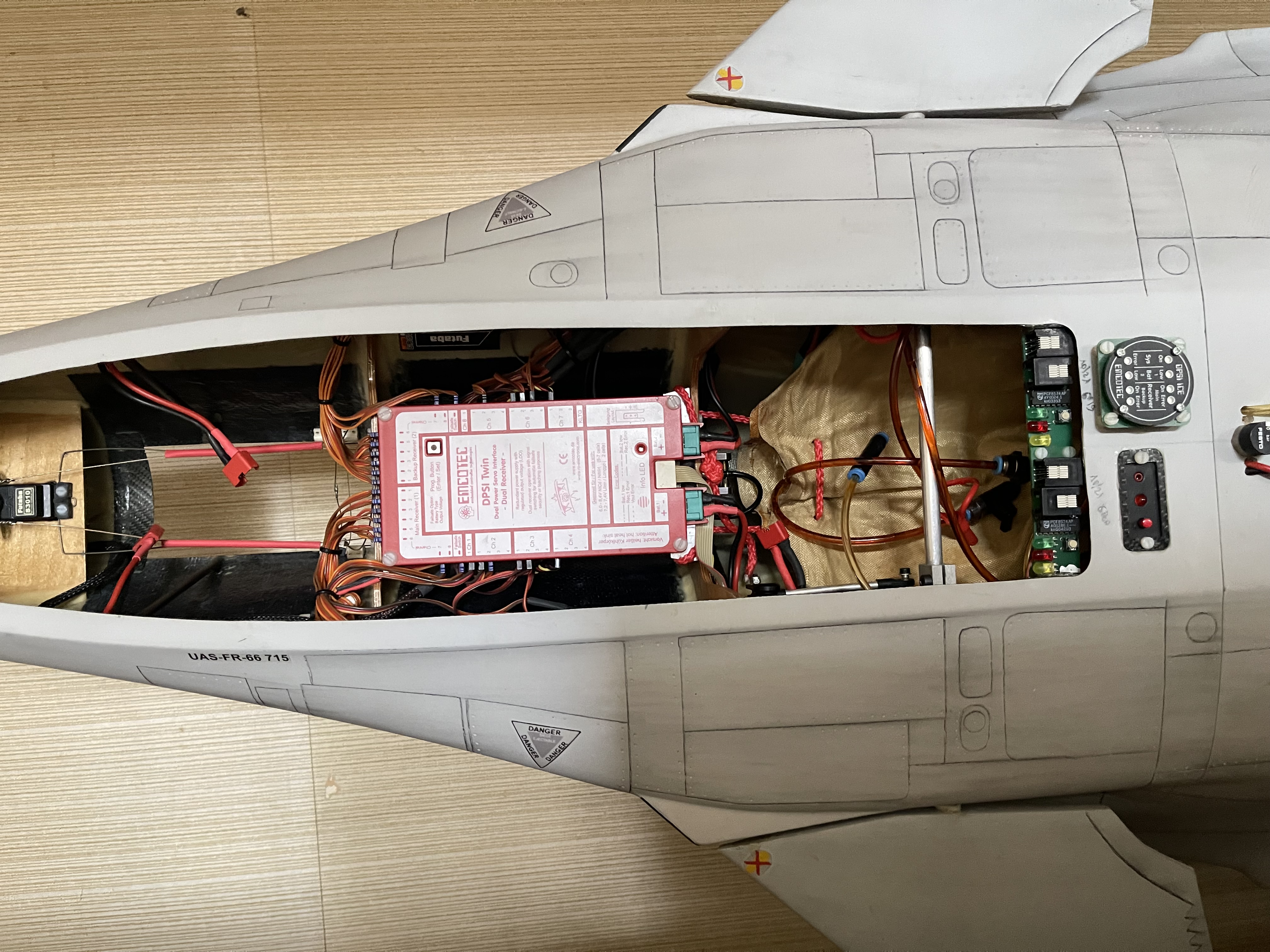 Rafale 1/7 biréacteur décor marine 1000h . 2 réacteurs Jetcat P120 SE. 2 réservoirs souples. Double réception emcotec. Visible en vol. Excellent état. Jamais cassé. Pas d’idée de pprix et donc sera vendu au plus offrant si proposition raisonnable.