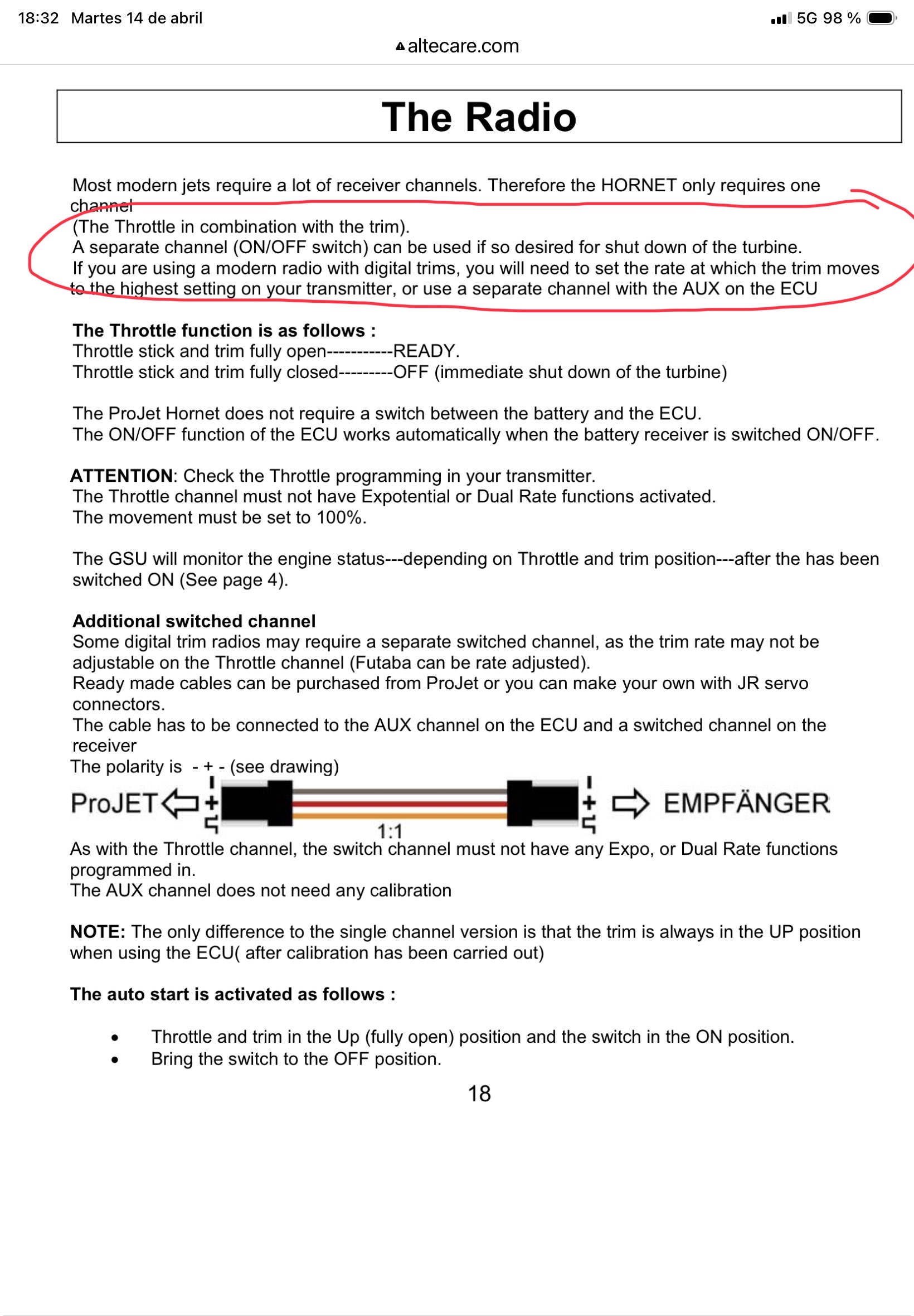 The problem I'm having is that once the ECU is configured, I don't know exactly where to connect the wires for the throttle channel and the on/off switch channel to the ECU. Could someone provide a wiring diagram if I'm using the switch option?