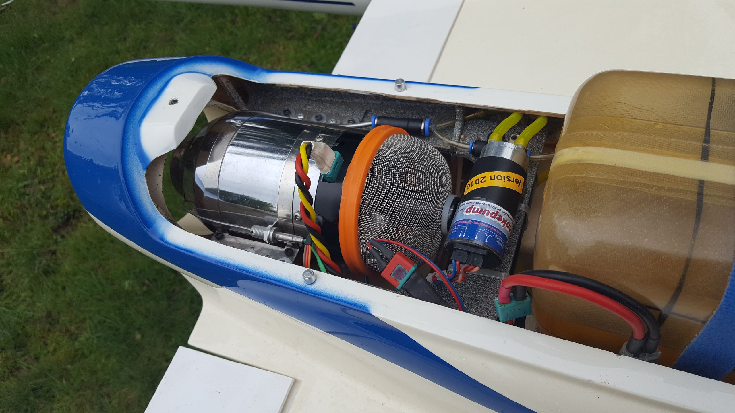 Envergure 2.2 m Réacteur Jetsmunt M90 10h30 .Rx Jeti REX 14 . Gyro roue AV . Tous servos numériques . Fumigène. Double réservoir Kevlar. Batteries Jeti 3100 mAh neuves. Train attérrissage géré Jetronic