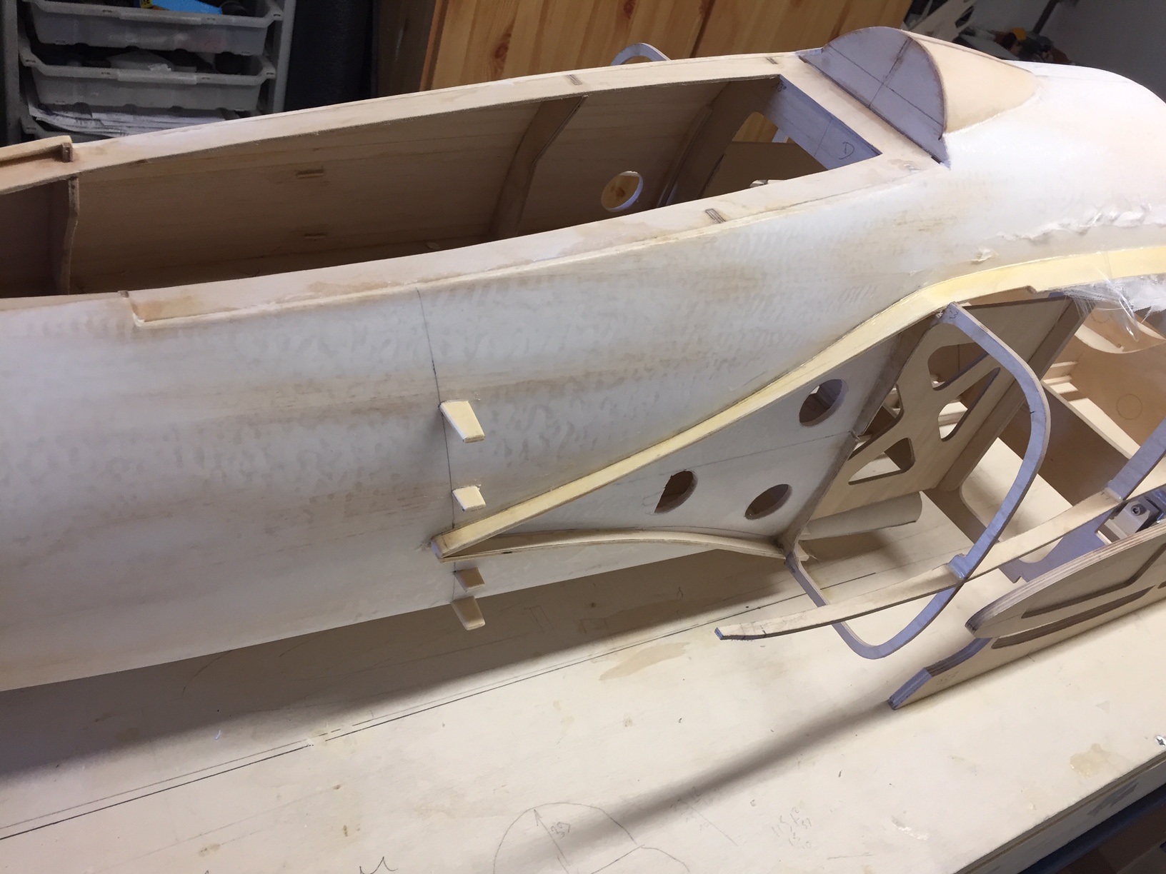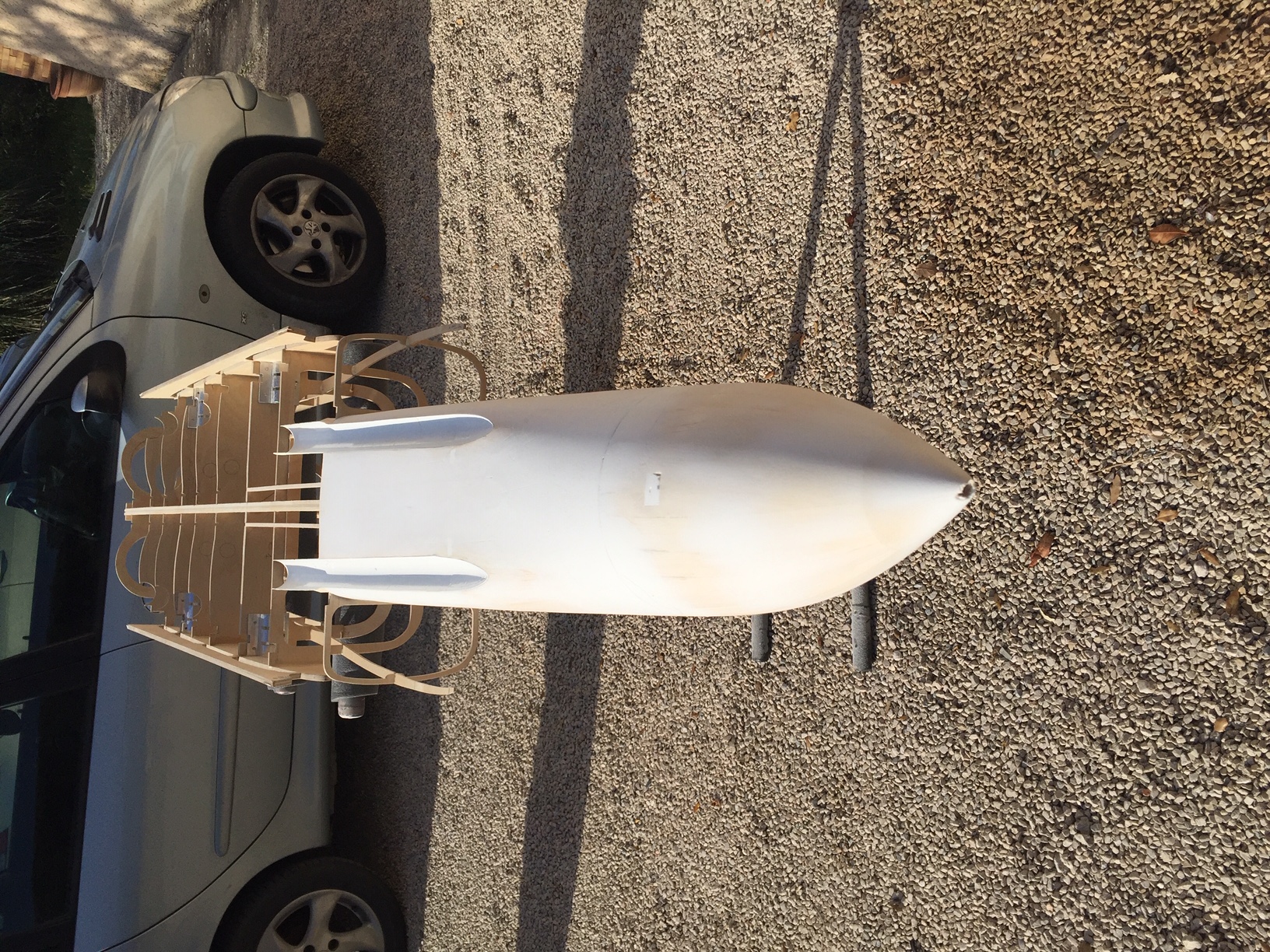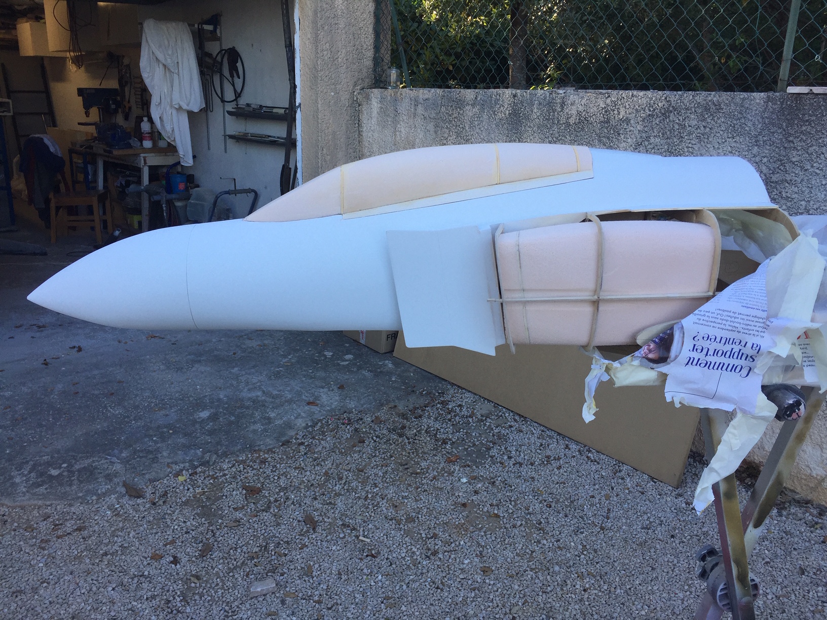 Bonjour à tous, merci Majax j espere continuer comme ca jusqu au bout. Je pensais commencer les entrées d air ce week end, mais il me reste beaucoup de travail avant. Demain je vais realiser (en fibre de verre) les cavités prevues pour recevoir les roquettes, pour pouvoir continuer le coffrage de la partie avant. Photos