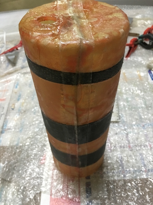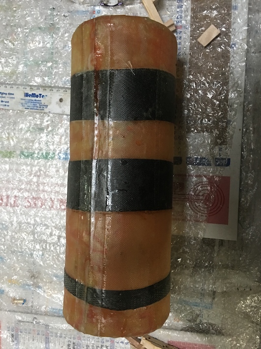 Étanchéification par l'intérieur avec de la résine colorée pour voir si ça va bien partout. Et surprise: la résine sort de partout, preuve que c'était vraiment pas étanche.