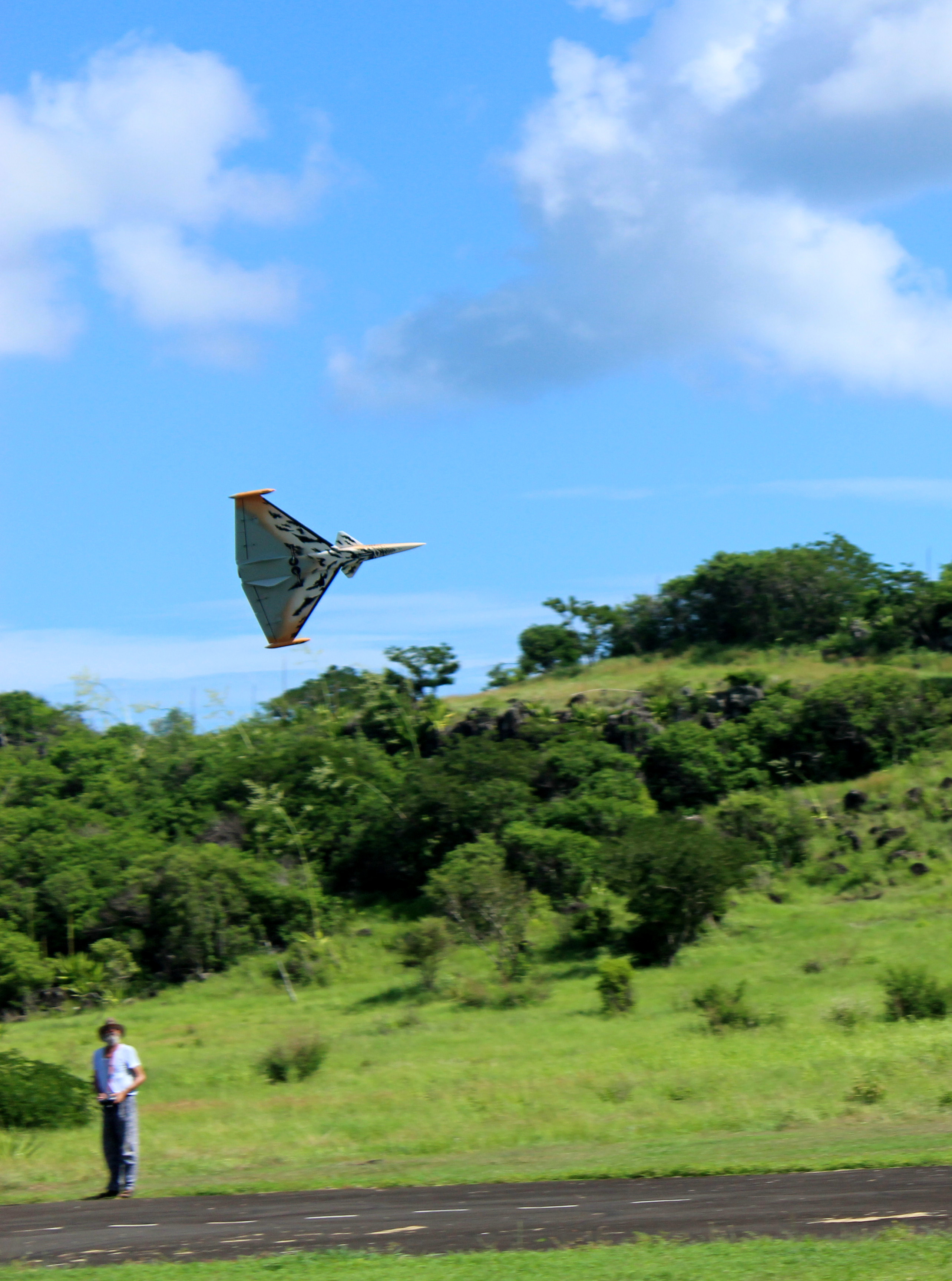 Suite a une prise de vitesse en descente a 45° un servo des canards a cassé. Sans doute un flutage ?. Malgré des qualités de vol bien dégradées, l´engin a pu être ramené sur la piste. Ce fut laborieux... Voir la vidéo. Heureusement, avec la vitesse, le canard défectueux est resté dans la ligne de vol.