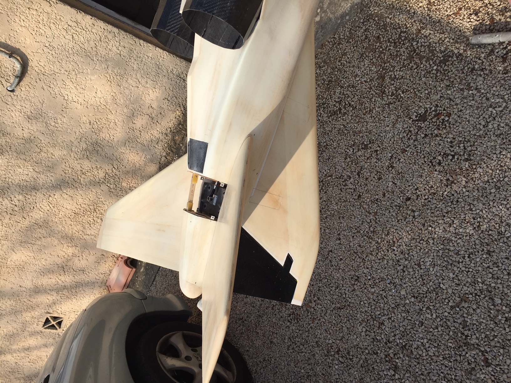 Bonjour à tous, aujourd'hui l'aile gauche presque terminée (restera la peinture et le collage de l'aileron) pour le premier vol. En effet pas de finition ni de trappe de train on verra apres le premier vol .J'ai quand même pris une empreinte de l'intrados pour faire la future trappe (en tout cas j espere) on peut voir 3 trous qui traversent le "moule" et l aile et qui permettront son positionnement (pour decouper la trappe au bon endroit). J ai donc ouvert au minimum (pour l'instant) le passage pour la jambe de train dans l intrados.