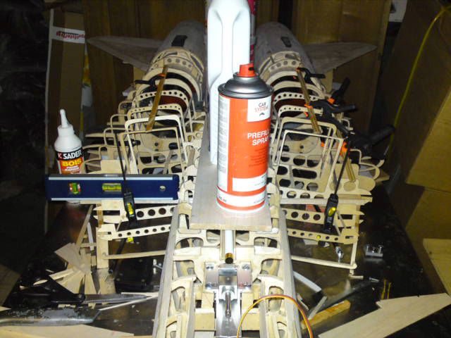 -- le réservoir qui était faite en une seule pièce a était fendu sur le haut afin de mettre une plaque trouée en epoxy ceci afin d'(éviter tangage et roulis) le gyro chauffera moins