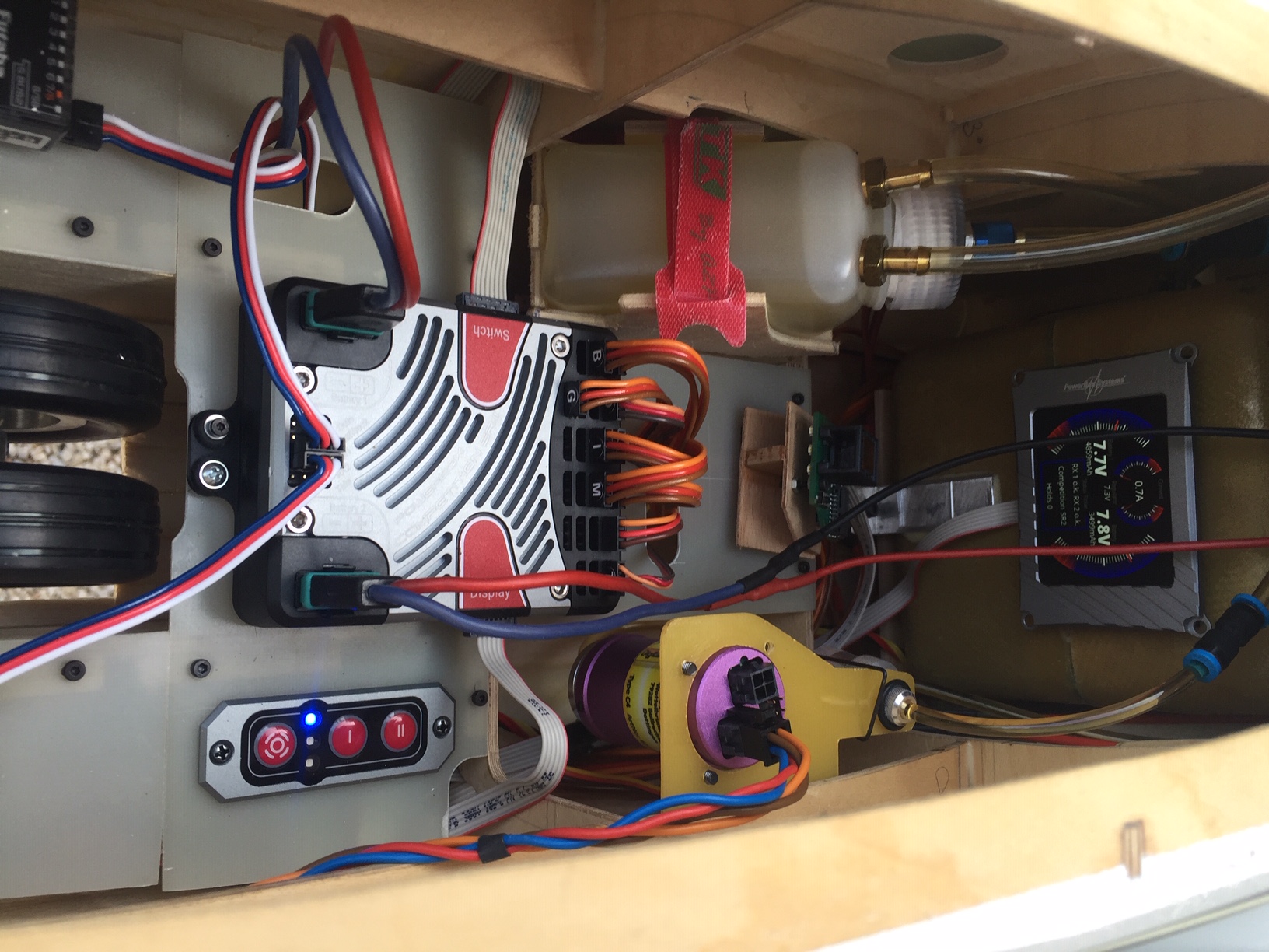 Bonjour à tous, ci après quelques photos en vrac, support batteries, jambe de train avant, vue installation intérieure et d ensemble.