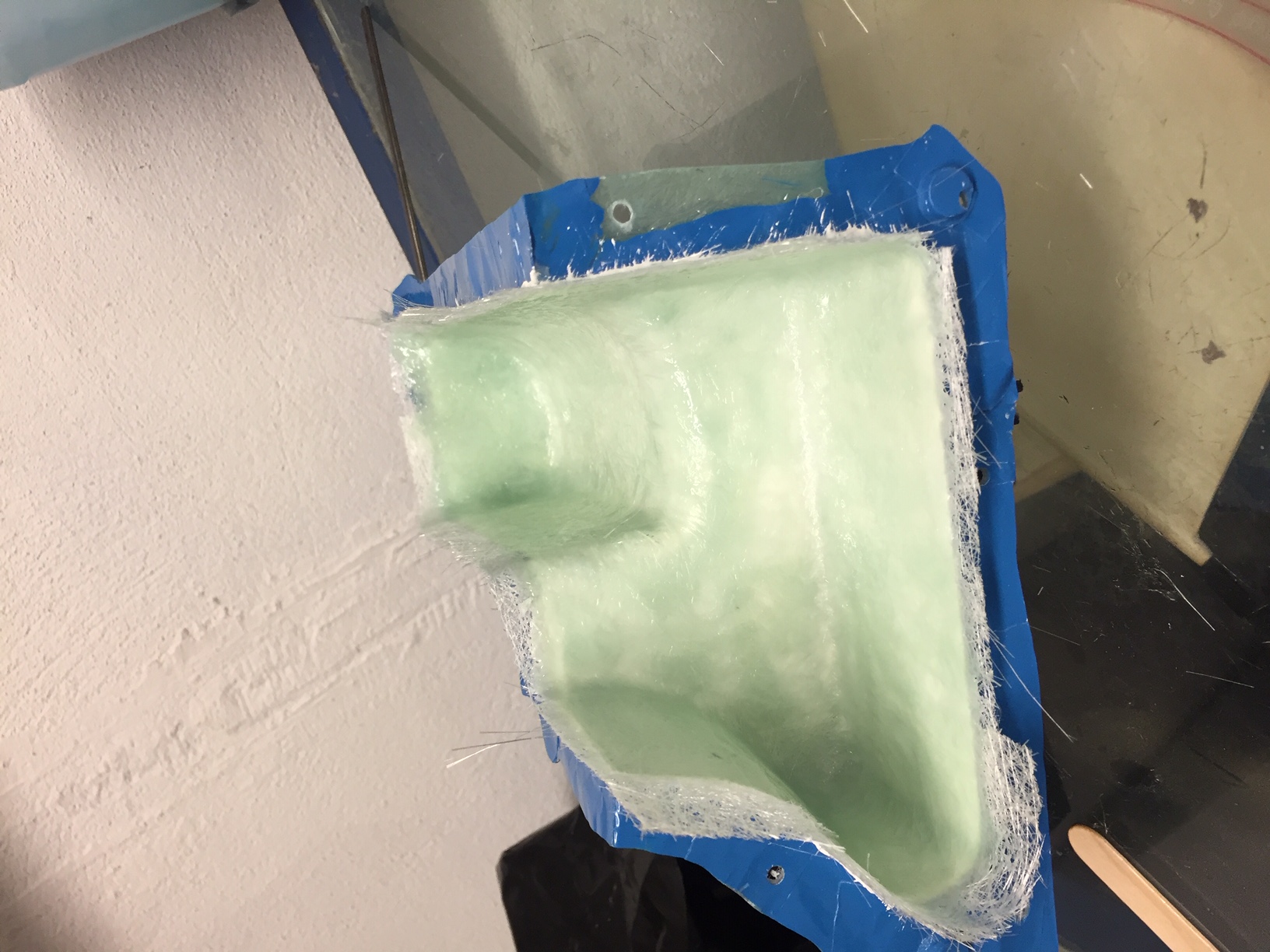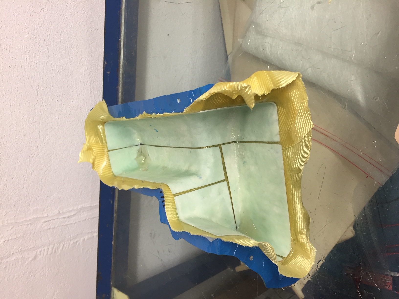 Bonjour à tous, donc aujourd'hui je continu a fabriquer le moule du reservoir. Ce moule sera en 6 parties, les plans de joint ont été realisés en scotch alu et prévus aux bons endroits (pour démoulage facile).Rien de compliqué , juste long et couteux en pinceaux. Photos
