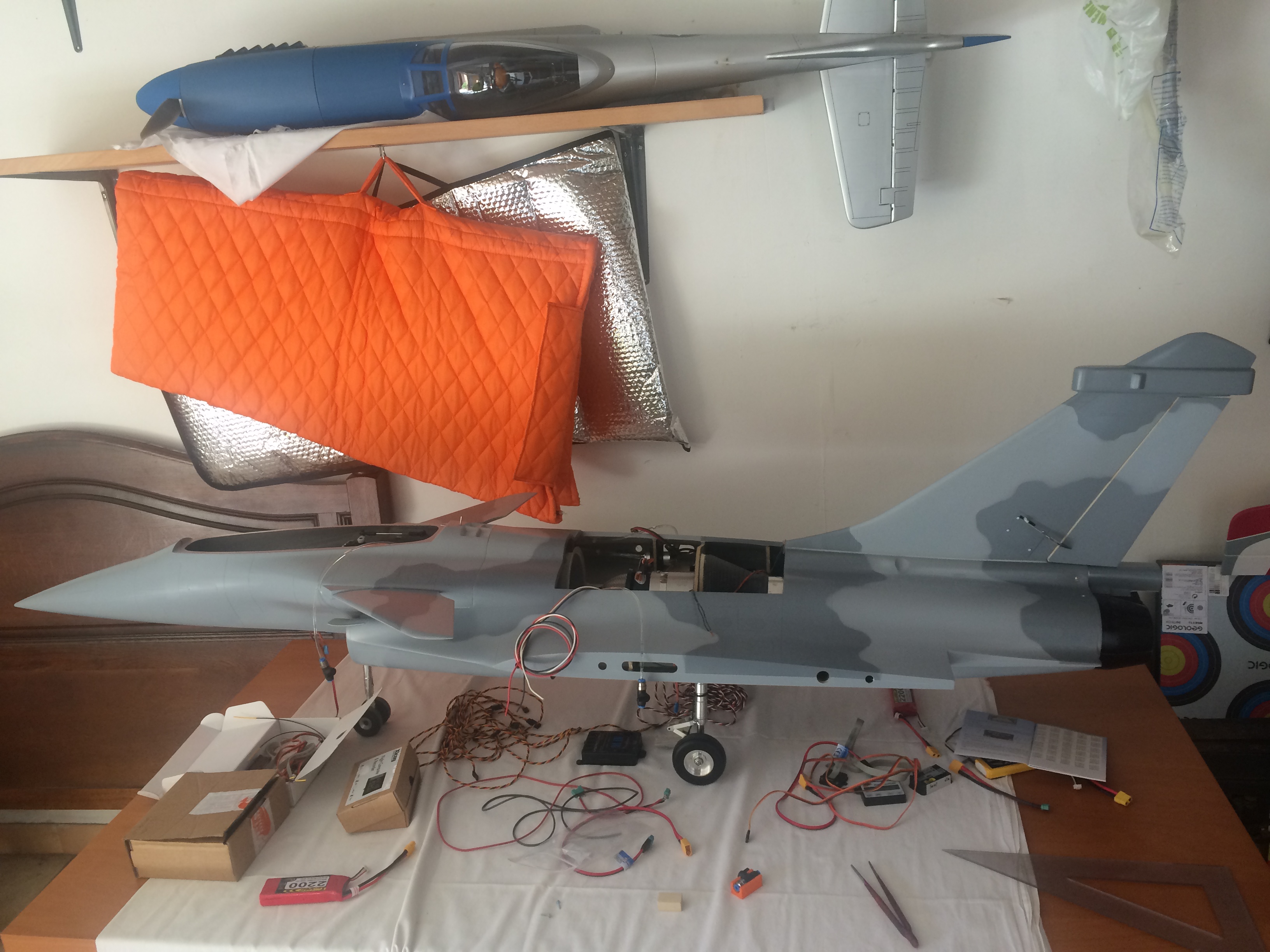 Le rafale est enfin dans le garage...avec un VT80 et une Mercury y a plus qu'à.. brancher quelques fils en fait pas mal de rallonges à faire pour éviter les prises.