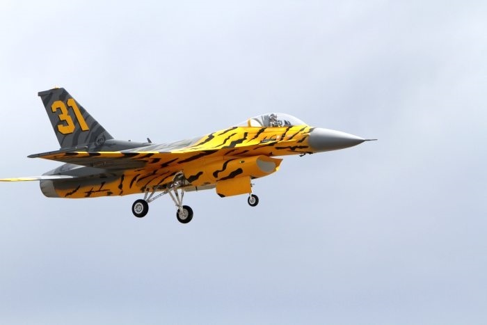 J'ai remarqué dans la masse ce F16 et j'ai discuté un moment avec son propriétaire qui me faisait beaucoup d'éloges mais quand j'ai vu son circuit d'atterrissage en second régime on avait l'impression que l'appareil avançait très lentement et ce jusqu'au point de touché avec arrêt en 20 mètres.