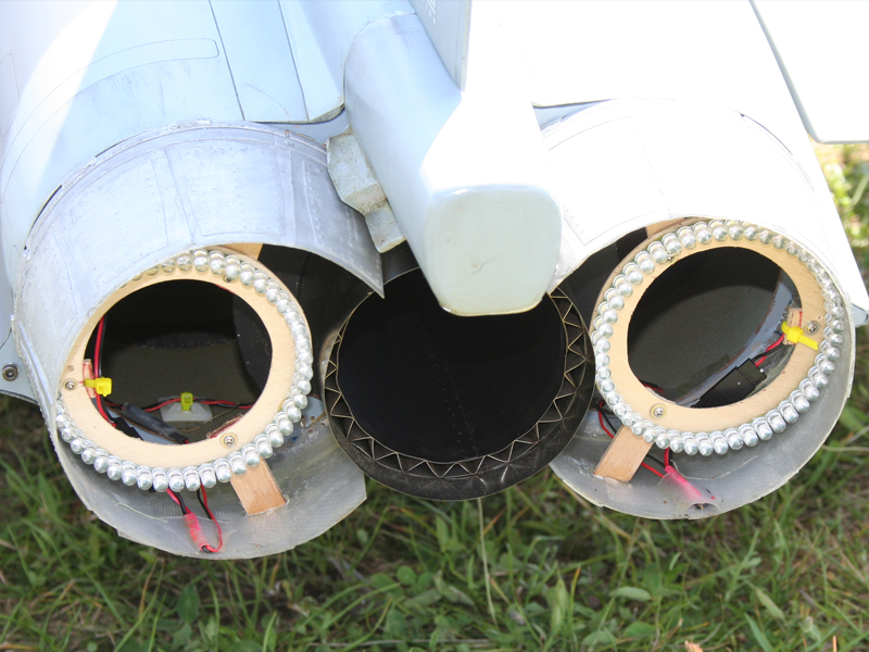 dans ces 2 tuyères maquette, je souhaite mettre des anneaux de LED mais au plus près du diamètre en sortie de Ø110mm: je ne veux pas avoir un anneau de 60mm dans une tuyère presque 2 fois plus grande, ça fait pas sérieux et surtout pas réaliste...