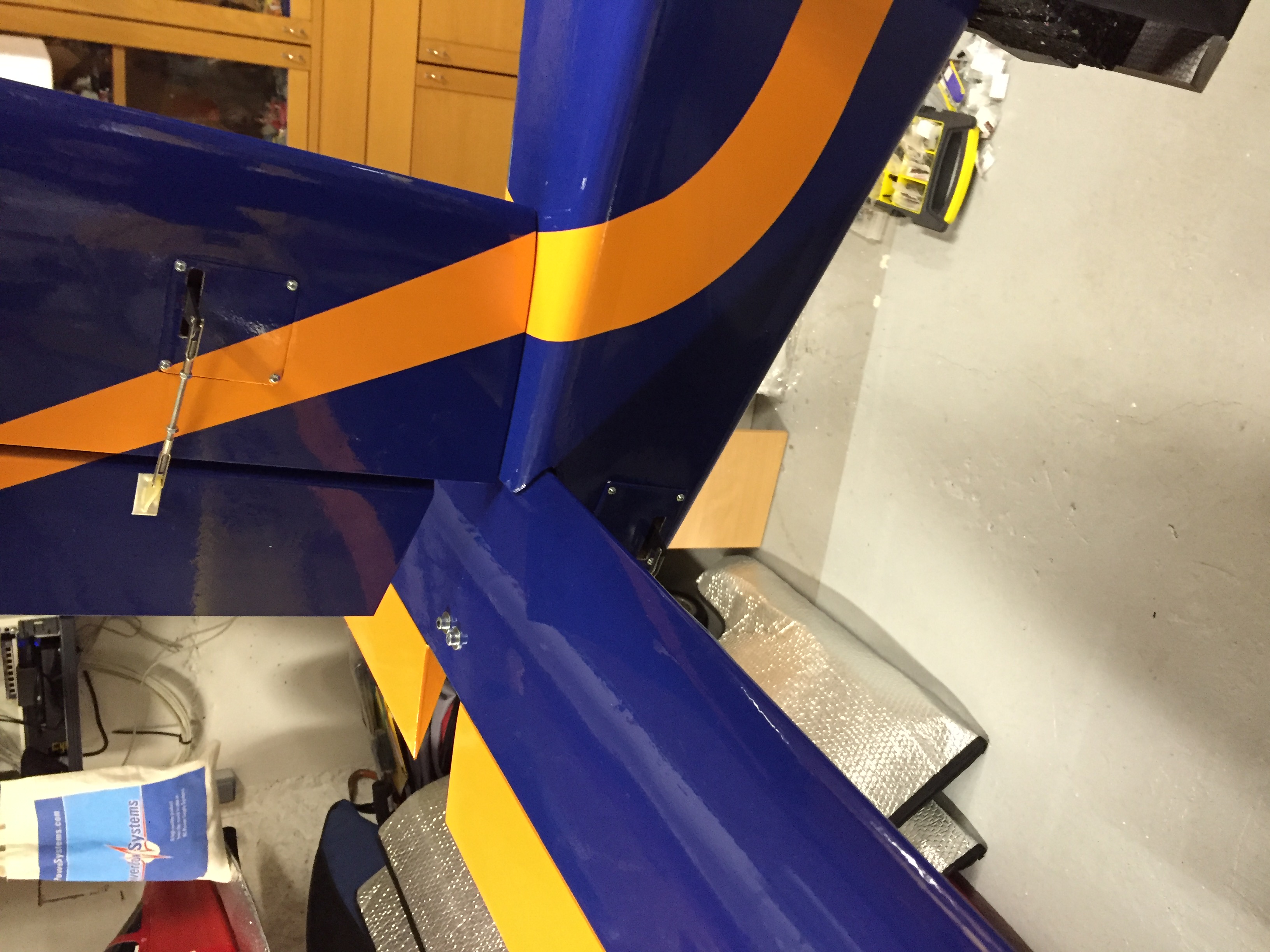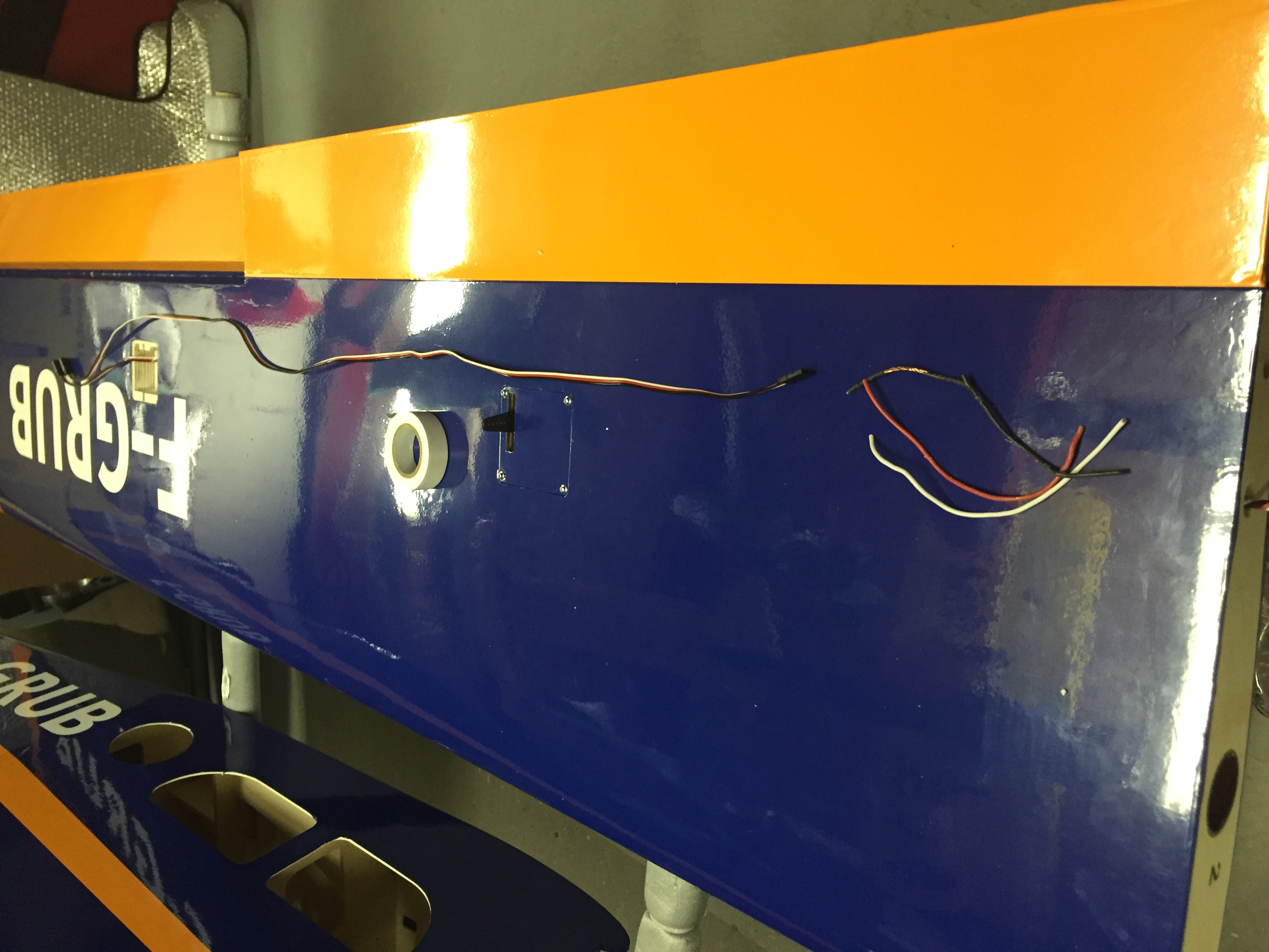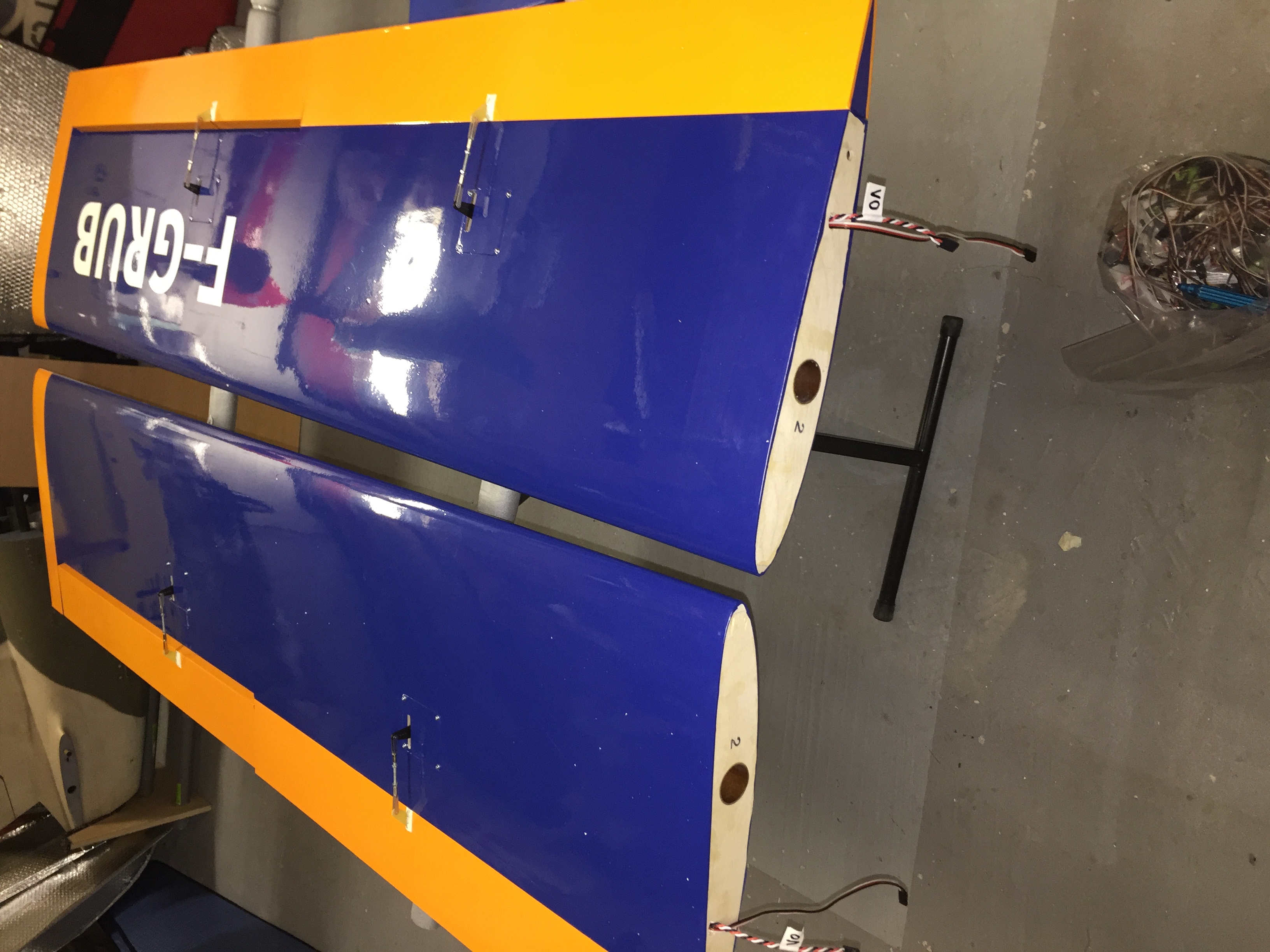 c'est sympa, ils ont pensés à nous mettre des guides pour le passage des servos d'ailes cependant c'est dommage ils étaient collés , et tellement bien qu'on en arrache le guide constitué de d'une rallonge de servos voir photo 1825 ...