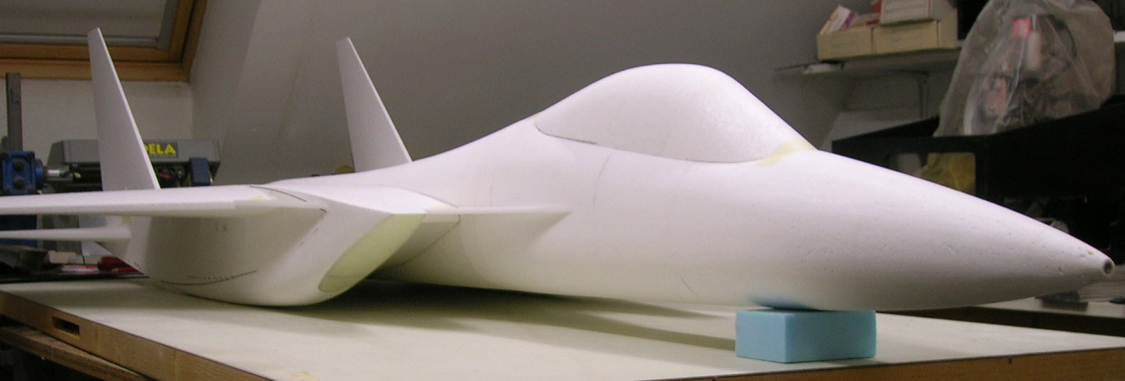 En fait, et pour en avoir discuté avec lui, son but est d'offrir les qualités de vol connue de son F15 sur un modèle attrayant rappelant le F15 certes, mais doté d'une conception simple (Ex pas de tuyère Y mais droite, voie de train large, montage aisé etc..) , permettant une logistique ,mise en œuvre terrain et utilisation simples. Avec qualités de vols très faciles pour les débutants.