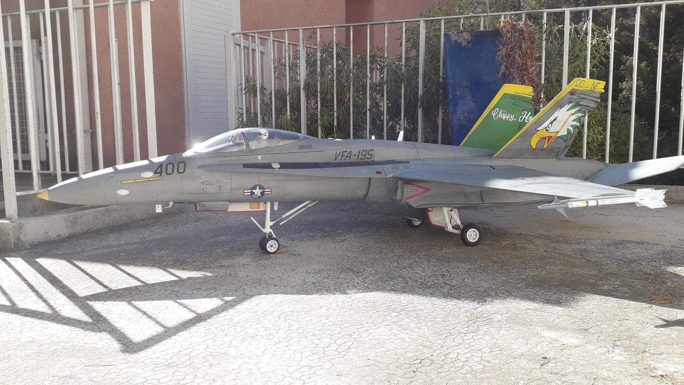 Merci le forum. Bonjour, vends F18 extreme ech 1/8 presque neuf, pas de crash.Train pneumatique d'origine , AF fonctionnel, commande de dérive a l’intérieur, quelques accessoires installé comme, missiles (bout d'aile) et feux navigation, cockpit avec pilote, plus les antennes et sondes. servo savox 30kg prof, hitec 15kg aile, le reste futaba 8kg. double alim emcotec , electro vanne pour train et frein et valve robart pour les trappes et AF , turbine simjet 3000aes poussée 14kg. Toutes les durites alim moteur a été changé, avion montée avec soin.