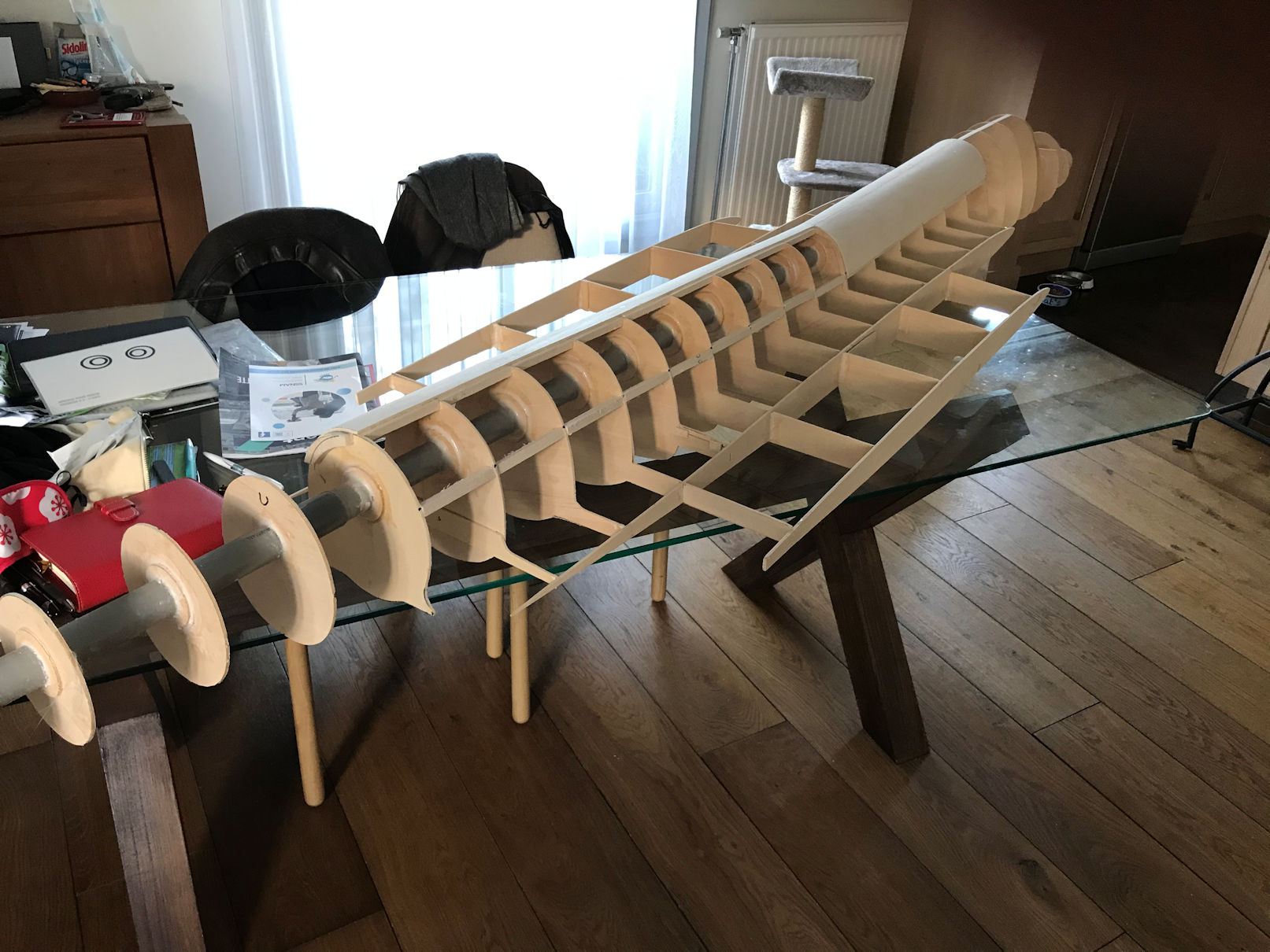 Après quelques semaines de labeur, un wagon de planches de balsa un litre de colle et 10 tubes de pâte a bois...une rapide photo de mon balcon, mes voisins me surnomment rocket man