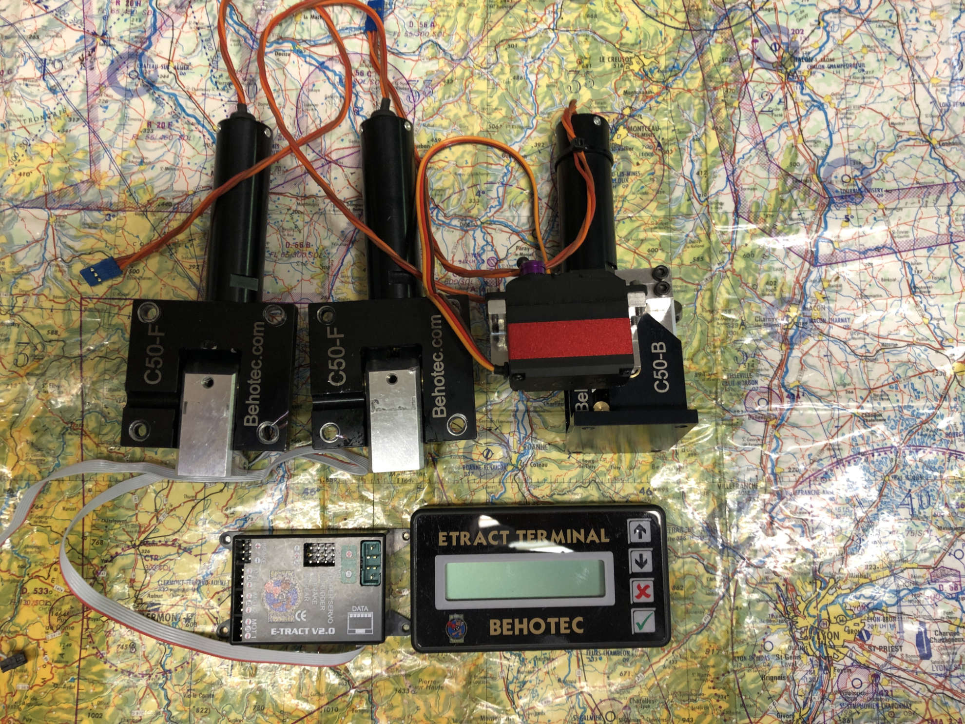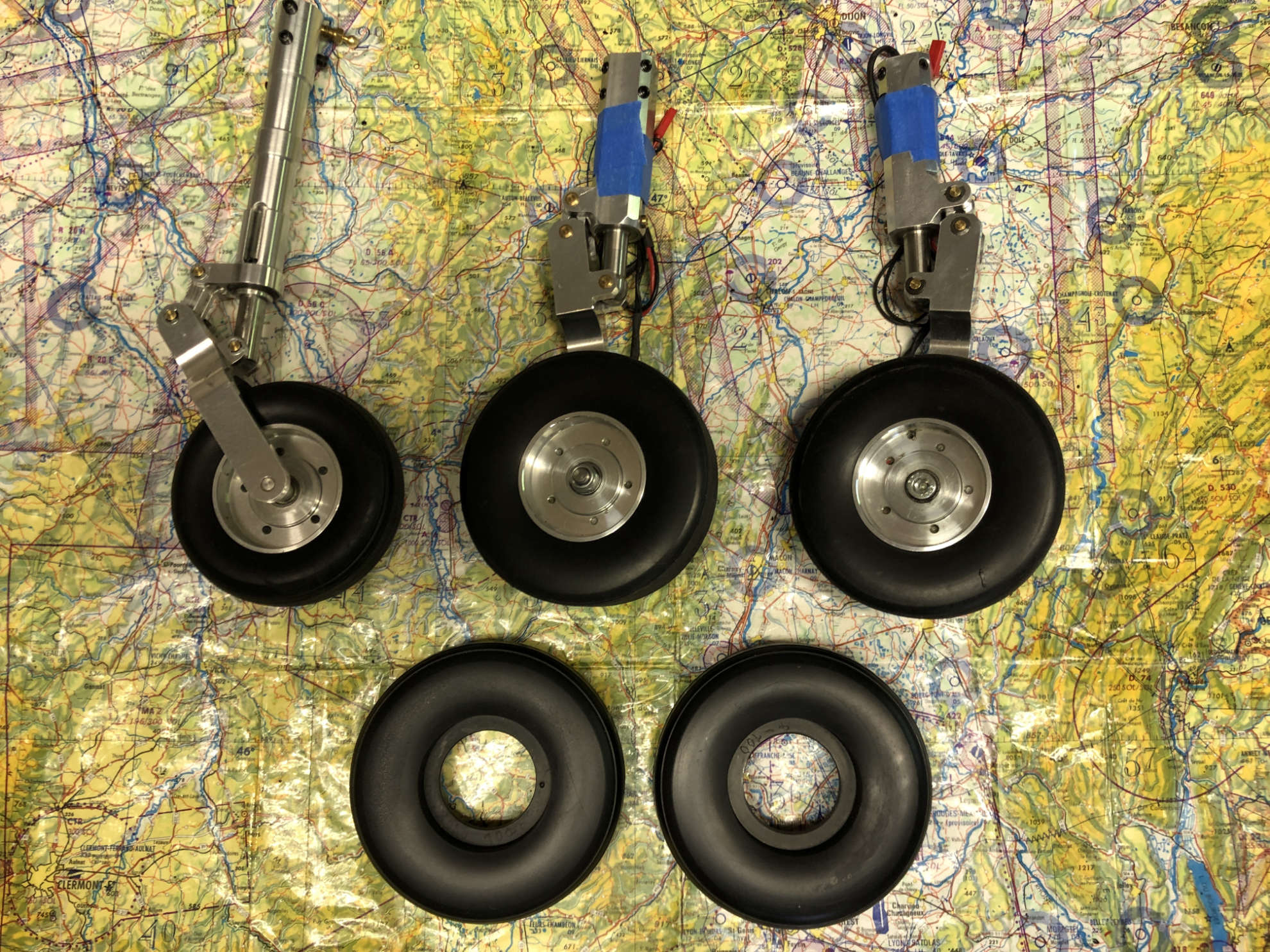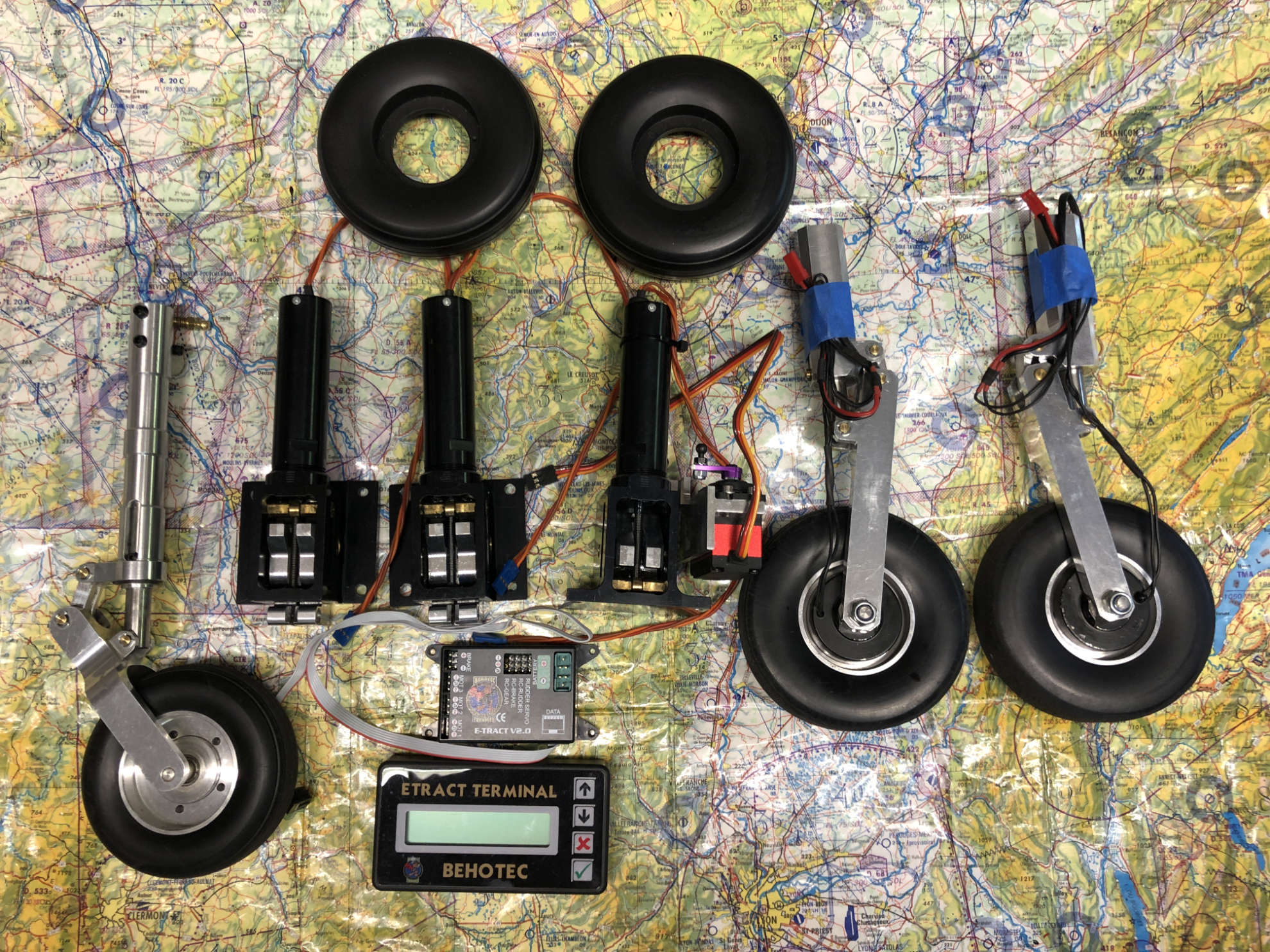 Je vends un ensemble train rentrant électrique Behotec C50 + jambes suspendues + roues et freins électriques Diamond A.D grand modèle.