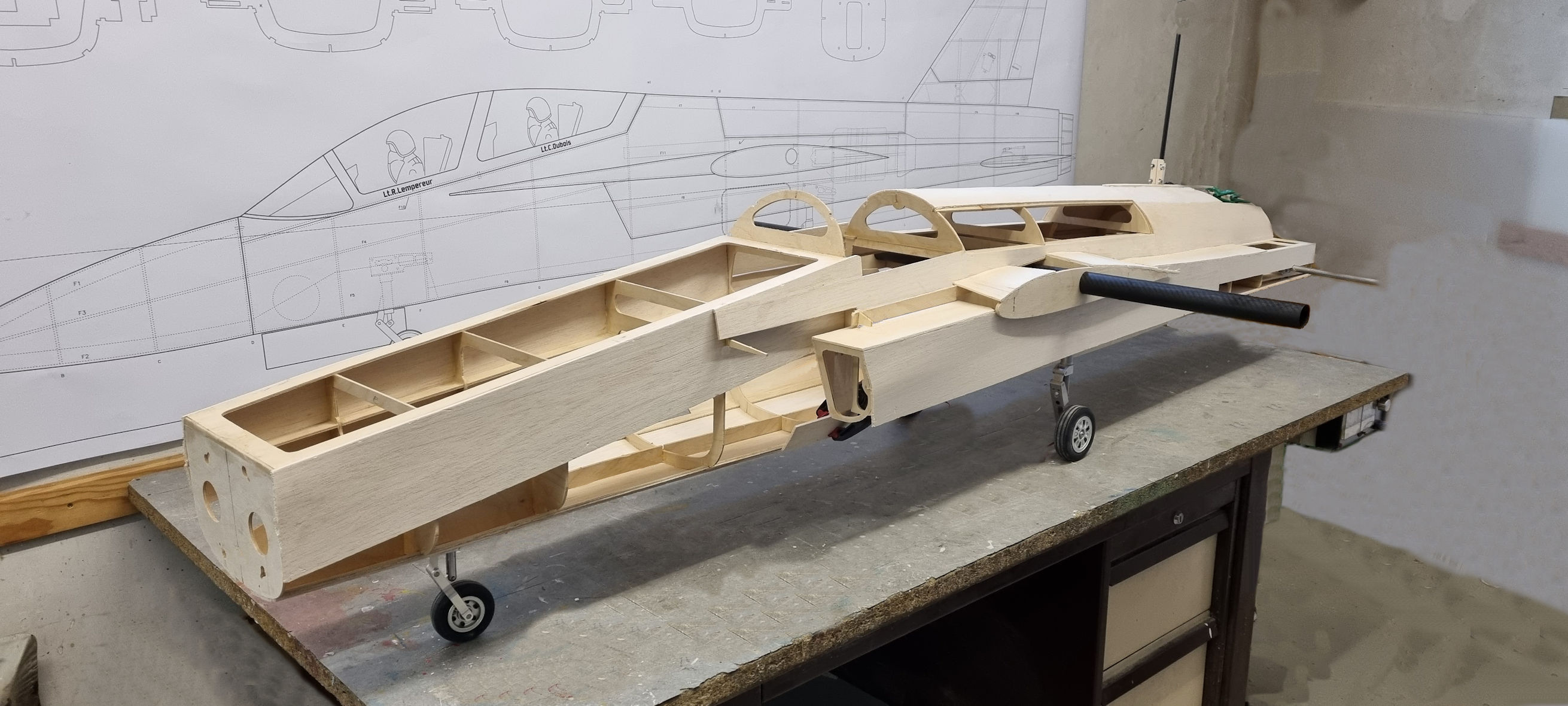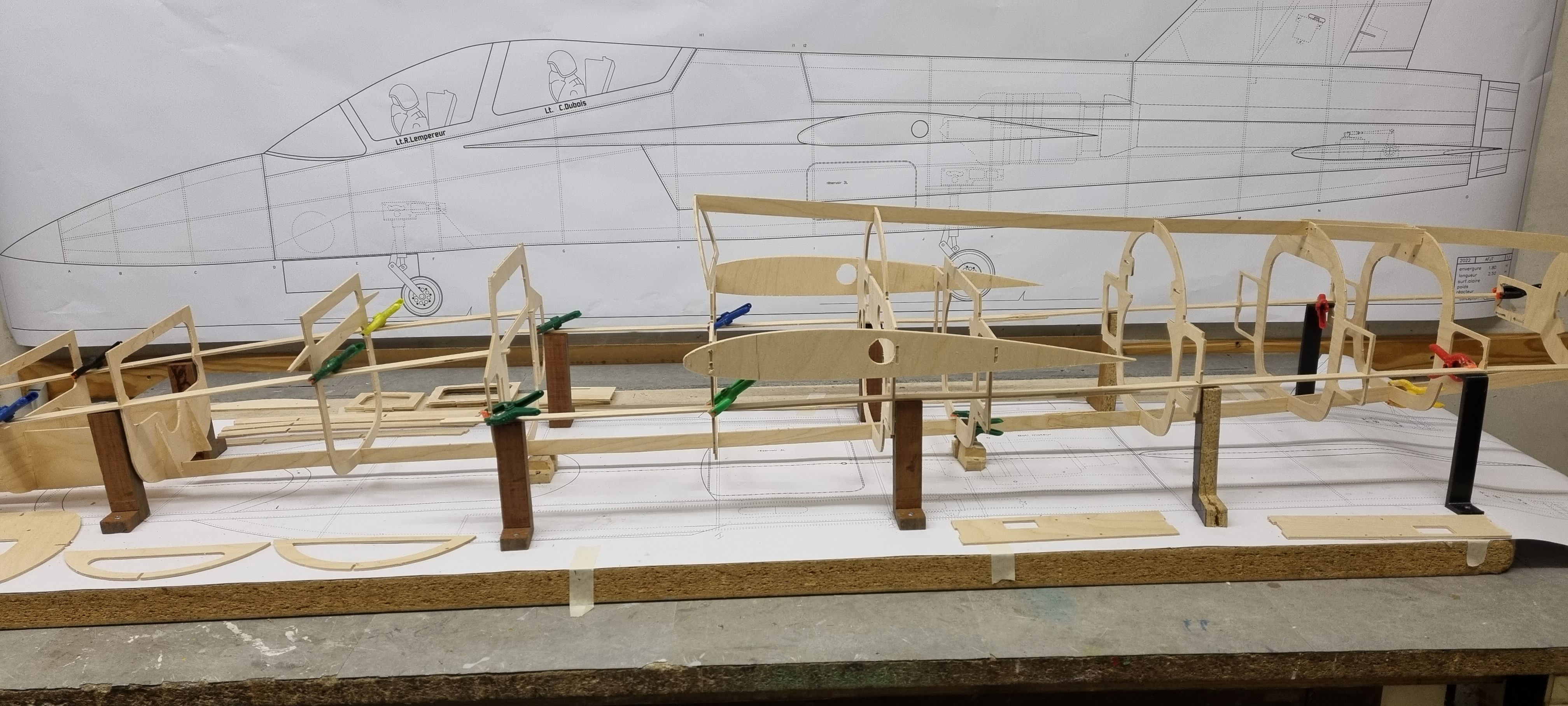 Quelques photos de la construction, les nervures du stab, l intérieur de l aile, les deux cockpits entièrement réalisés a l aide d une imprimante 3D et le master de la verrière. Apres le ponçage de l ensemble, c est le marouflage tissu de verre et époxy et enfin la peinture.