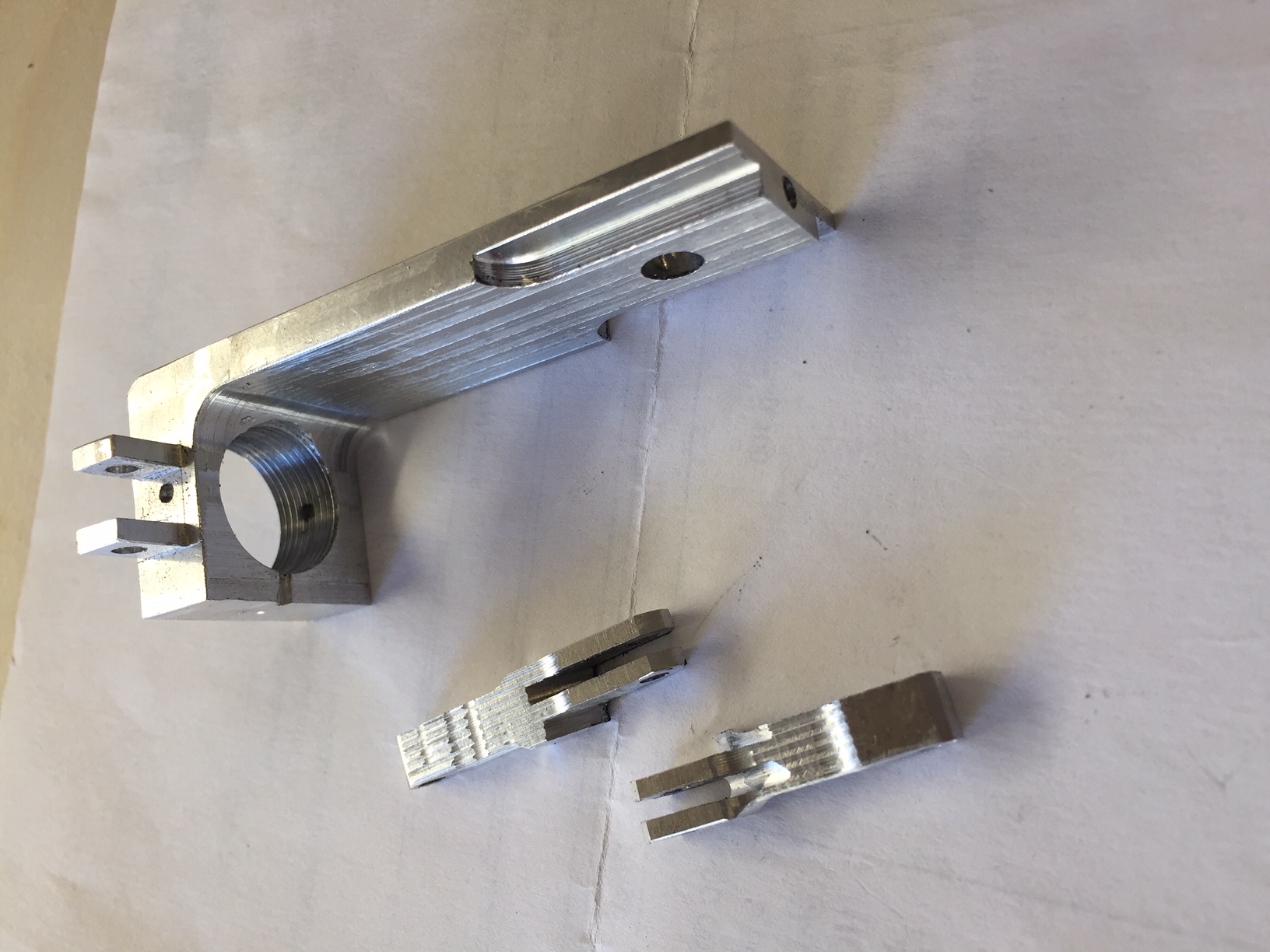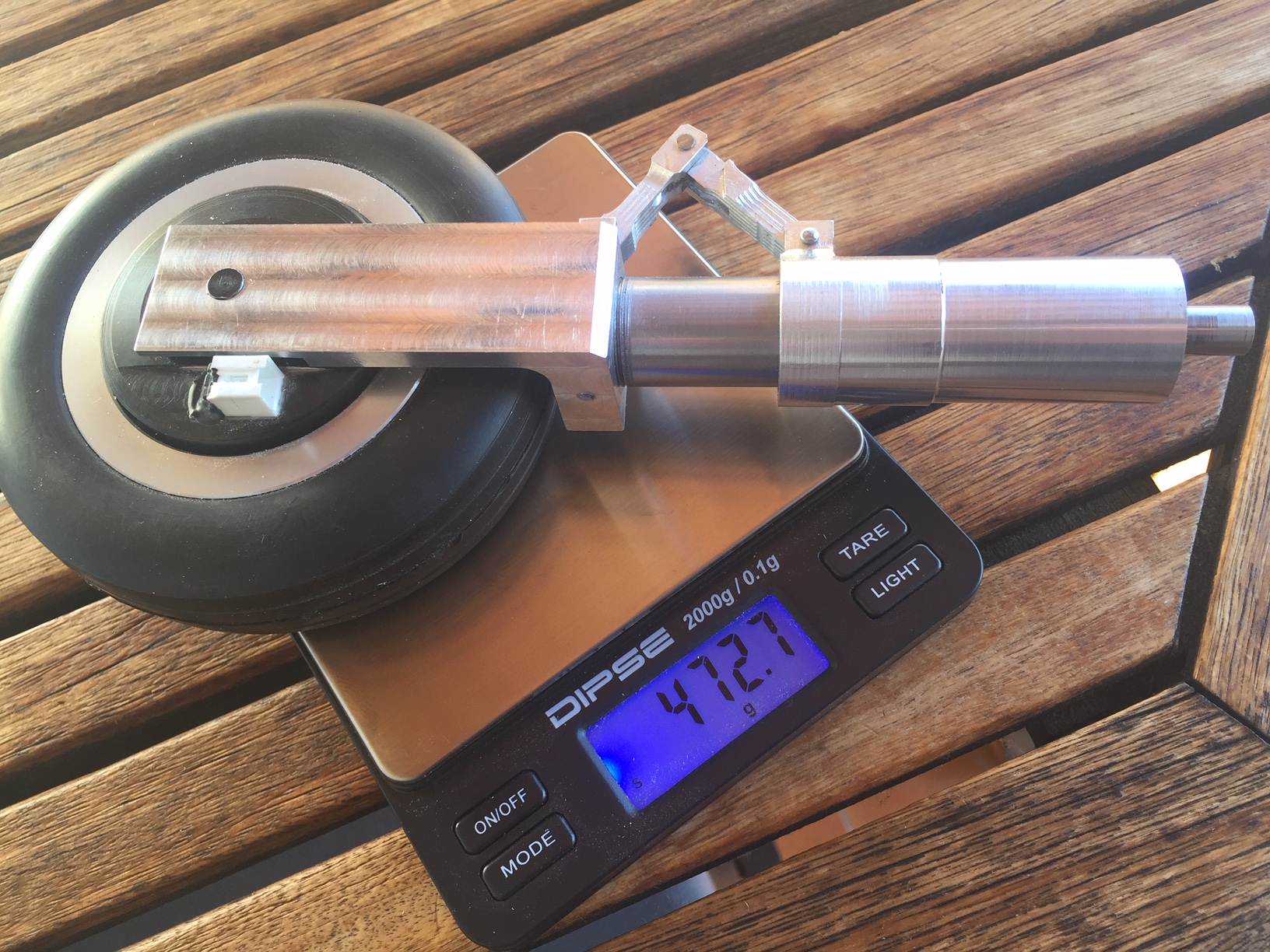 Donc fraisage du support de roue avec un percage dans sa partie haute (percage qui traverse aussi le tube plongeur et le verin hydraulique), qui a pour but de solidariser (par une goupille) les trois sous ensemble et empecher la rotation (possible puisque fileté) du support de roue par rapport au tube plongeur. Le poids est contenu puisque moins de 140gr, le debattement est de 23mm.