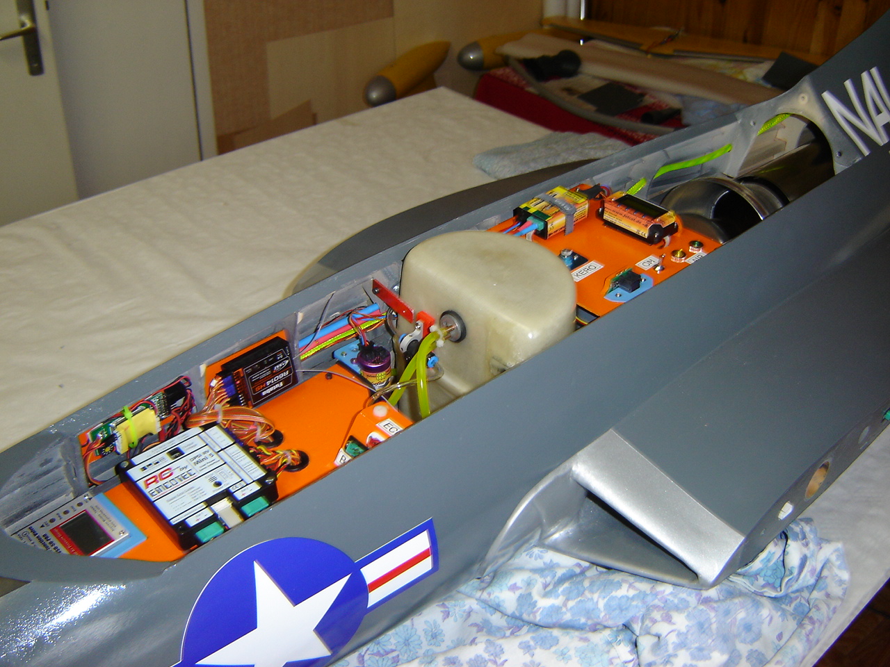 Je vends un f9 panther Ziroli en excellent état et pret à voler, construction tous bois + fibre de verre 25grs , il est équipé comme suite :
