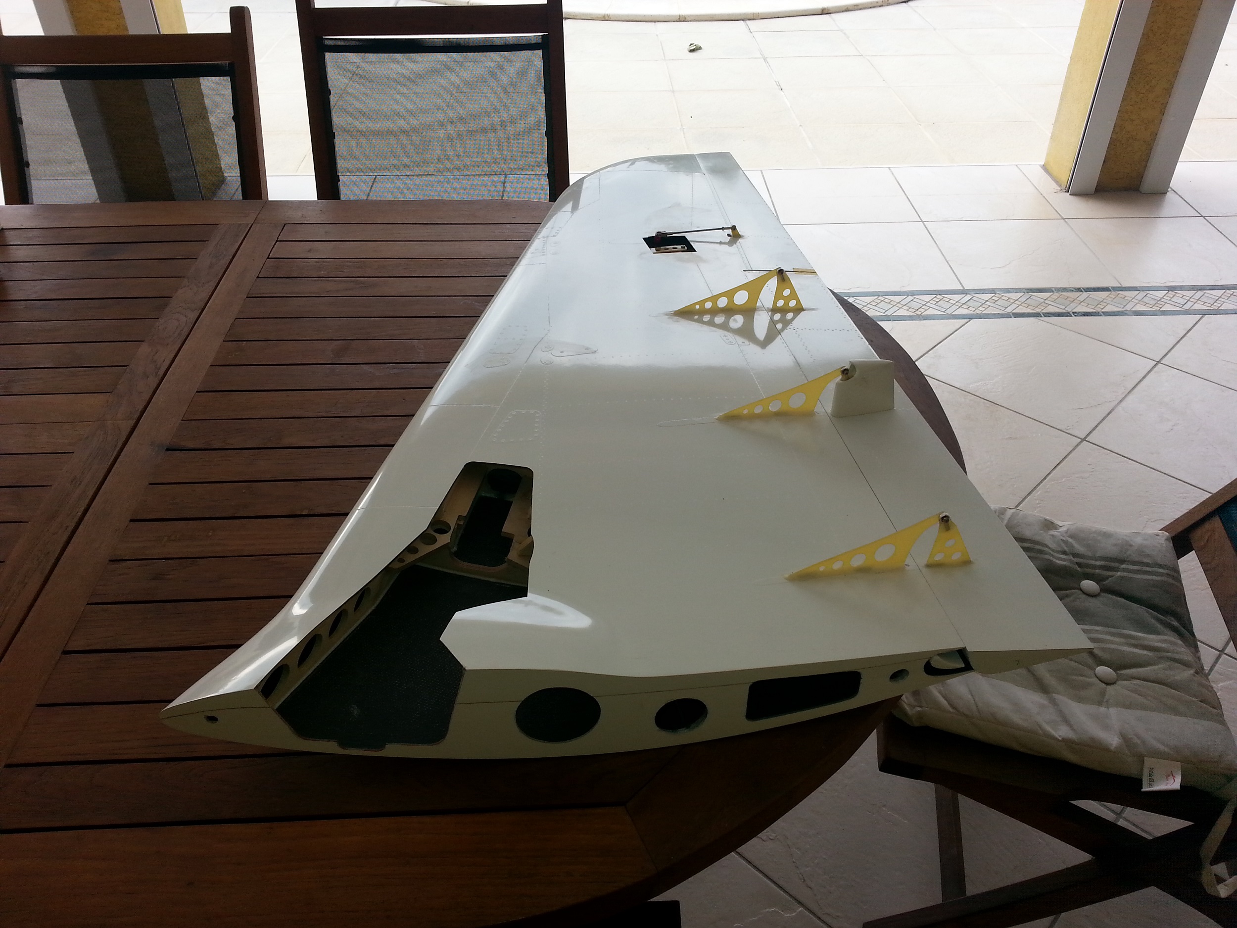 Les gouvernes et volets sont montés ainsi que les trappes de train avant (avec servo jr ds189hv) le support et le train avant , une partie des pièces maquettes le support réservoir.........
