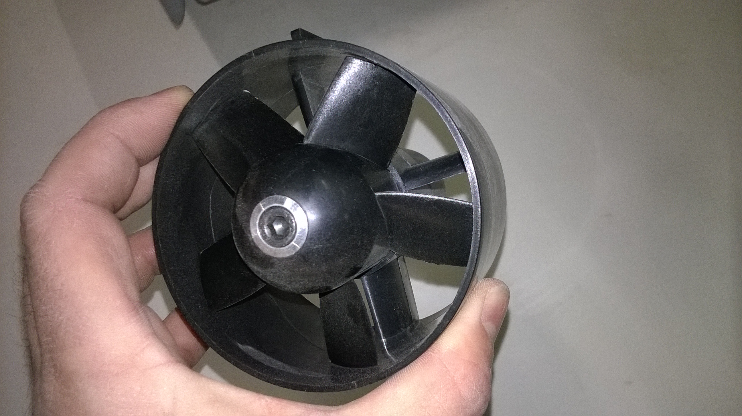 J'avais prévu de le monter avec une turbine 90mm. Elle est donc fournie avec, neuve non montée dans la cellule. C'est une turbine HET 9305-700 90mm 5 Pales. Le moteur est un Typhoon HET 700-68 39mm 1200Kv. Pour info, acheté le 01 avril 2015 sur le site RC TURBINE avec le montage et équilibrage de la turbine pour 196 €.