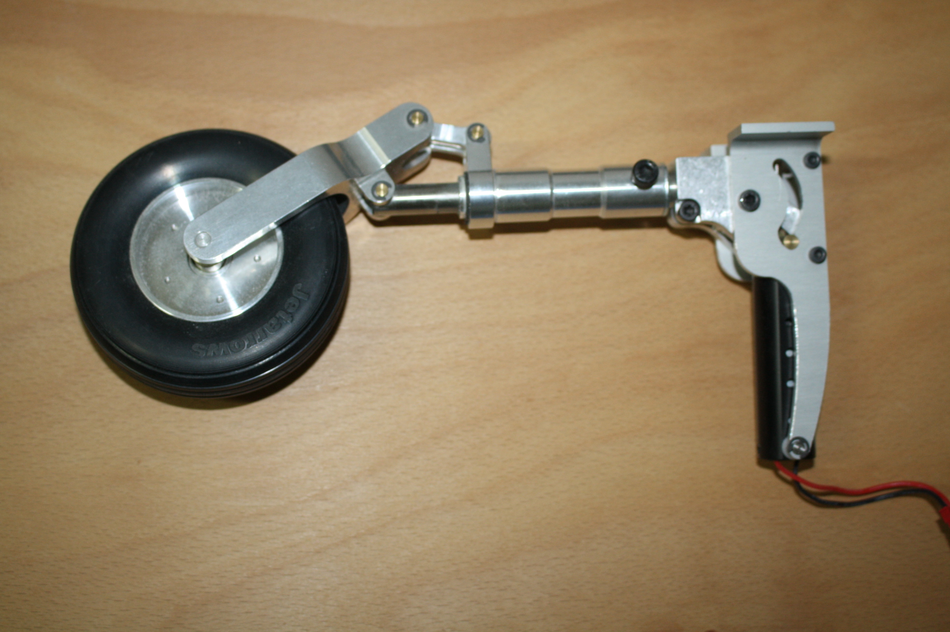 Les trains viennent de Lado (E-Retract) sauf la jambe avant qui est une Behotec. Si quelqu'un a une bonne idée pour bloquer la jambe avant lors de la rentrée du train, je suis preneur !