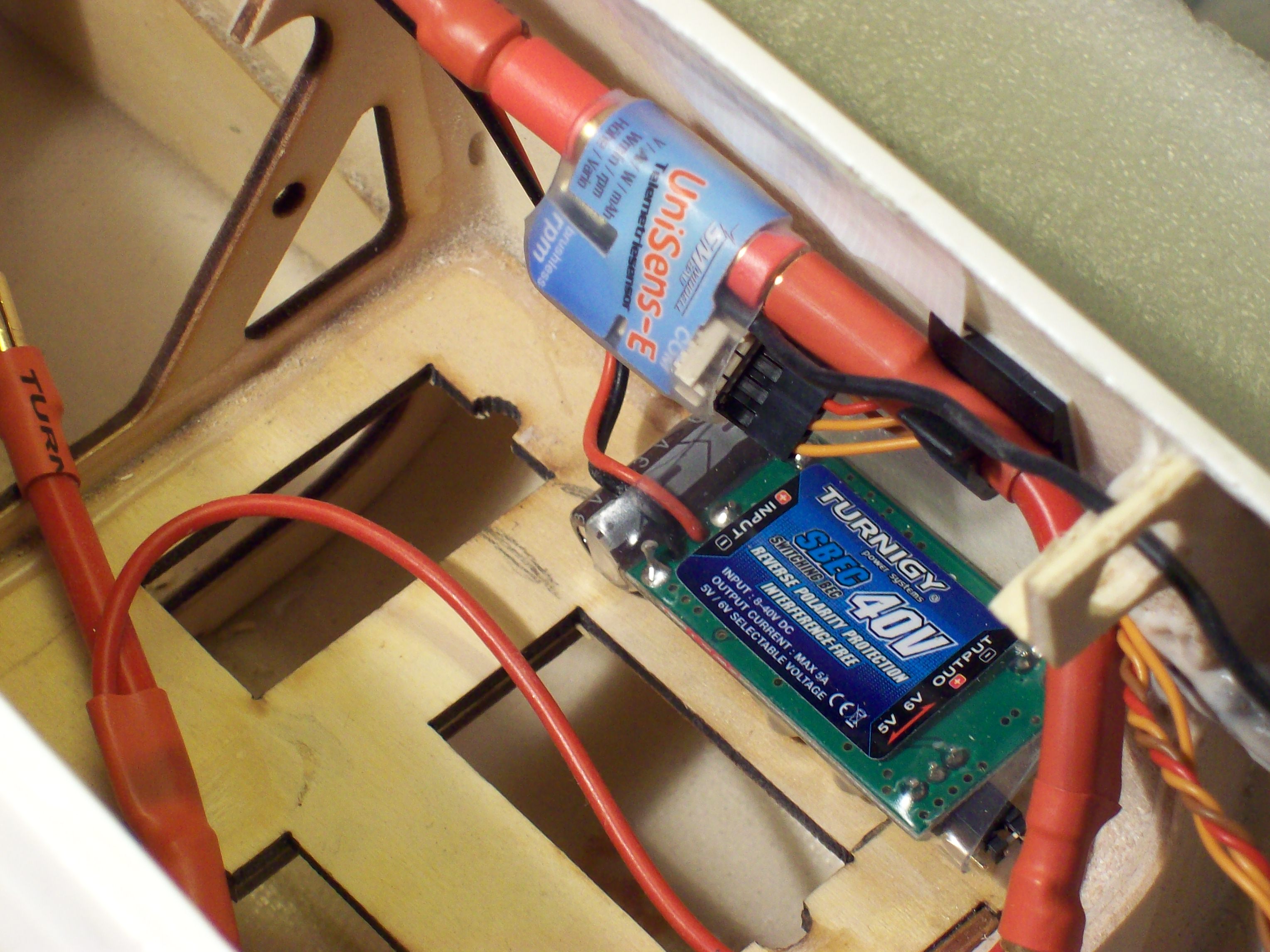 D'autre part, il te faut du cable (10AWG = 5.5MM = 140 amps) rouge et noir ainsi que de la connectique plaquée or 5.5mm (dont le poids n'est pas négligeable) et un système d'alimentation séparé UBEC de 7.5A pour être tranquille (ceux de 5A sont bien mais certains sont douteux - micro défaillances vue sur ma télémétrie en vol) - TGY se défend bien avec celui-ci : http://www.hobbyking.com/hobbyking/stor ... ipoly.html