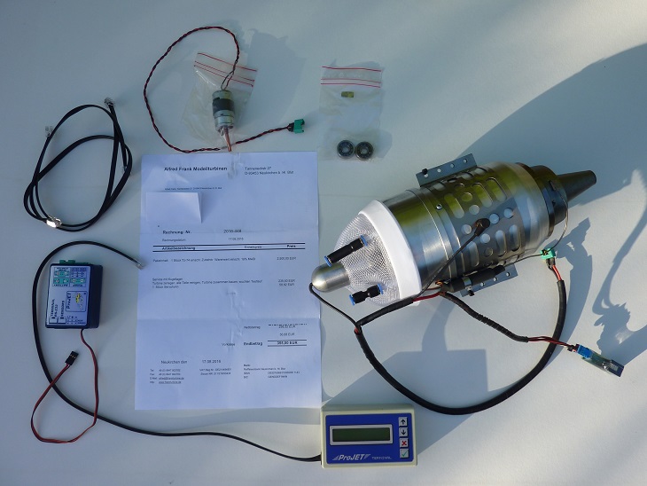 Vends Frankturbine TJ-74 14 kg tout juste rentré de révision chez Frankturbine (facture jointe), roulements changés. 1100 €.