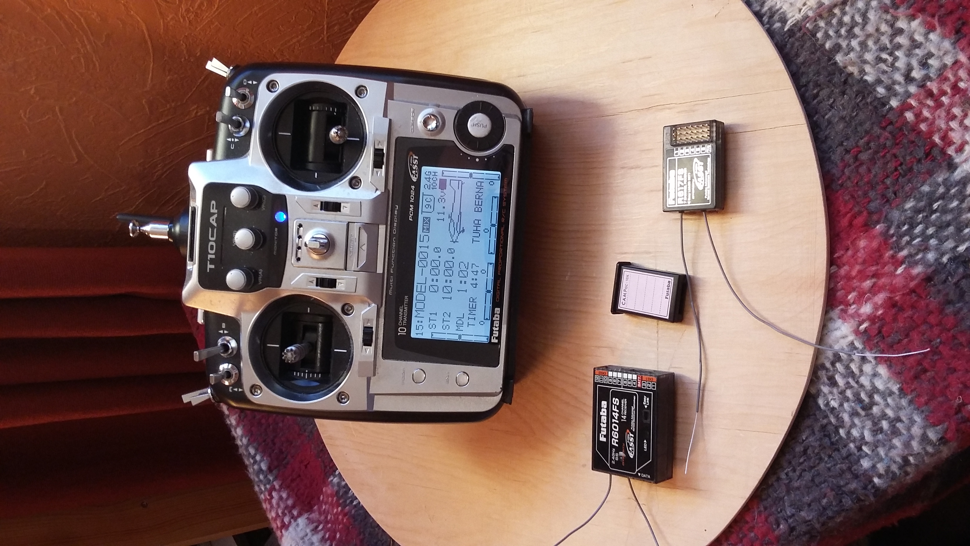 vends radio 2.4 Ghz FUTABA T10 CAP MODE 1 AVEC 1 RECEPTEUR R6014FS ET 1 R617FS + CAMPAC 16k + cordon écolage + malette.