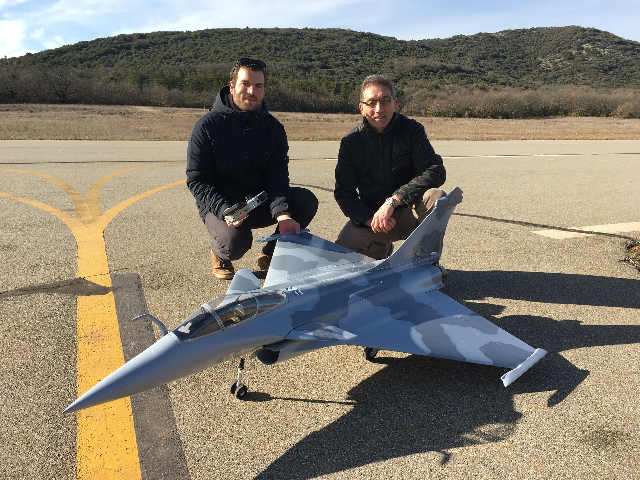 On peut deviner que Jean-Marc a "maquillé" la jambe avant du train par la LED d'alerte rouge / verte prévue pour le FC1 Xicoy, indicatrice des vitesses critiques et pilotée par la sonde pitot judicieusement installée dans la perche de ravitaillement... c'est difficile à discerner sur la photo du 1er vol 8-)