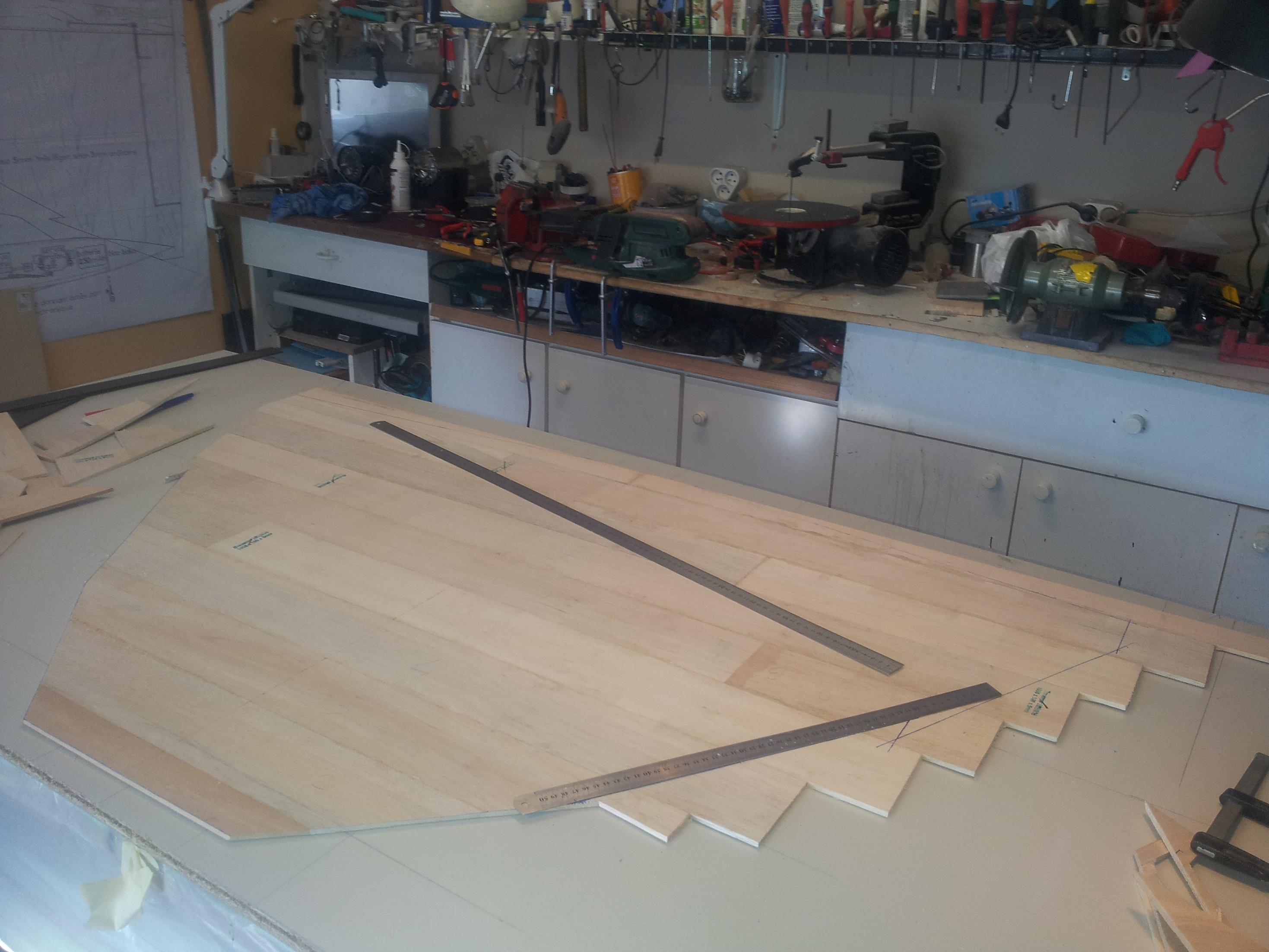 tous d'abord tu dois commencer par construire ton aile, elle est faite en deux planche coller croisé