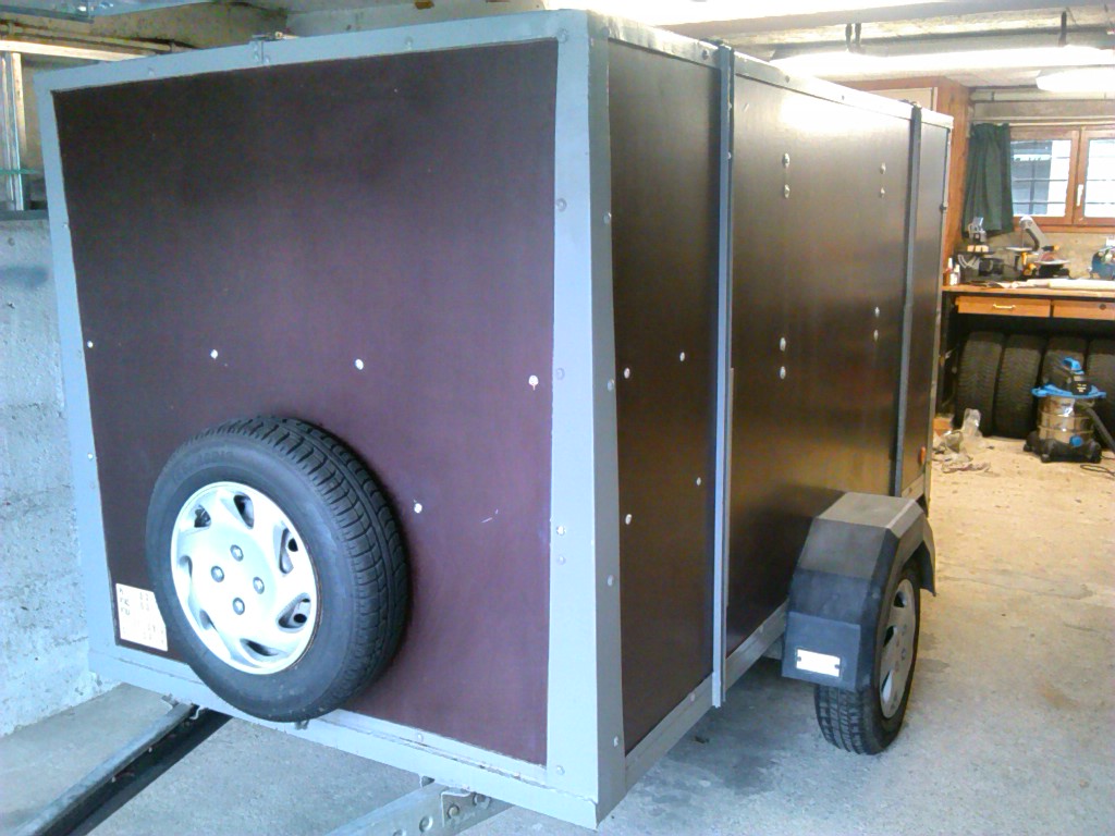 Châssis acier mécanosoudé, simple essieu suspendu, roues de 13 pouces avec pneus automobiles 155/80R13, 1 roue de secours. Les 3 pneus sont, pour ainsi dire, neufs.