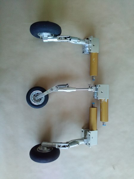 Faire 1/4 de tour au jambes du train principale ne serai pas possible, le ressort ou la roue toucherai le vérin sauf en allongeant les axes (6 mm).