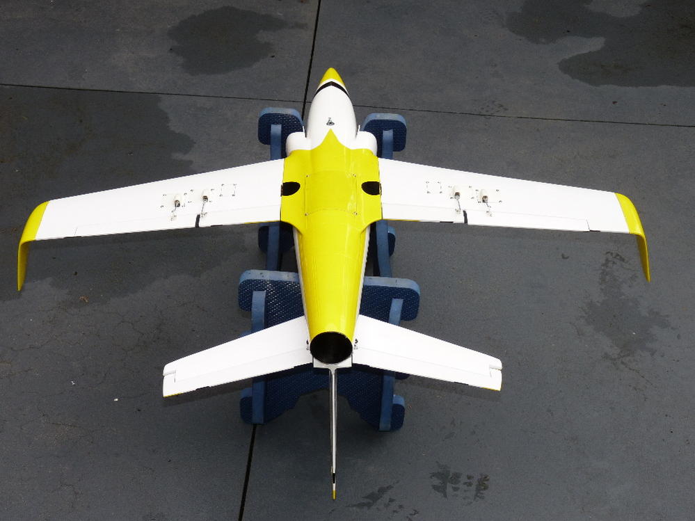 Avec une turbine RC Lander DPS 68mm (5 Pales) + moteur 4000Kv (4S)(poussée au banc : 1700gr - 68A - 13.8v), ce jet aura une puissance suffisante avec un rapport de poussée/poids de 0.81 pour 2100gr :mrgreen: