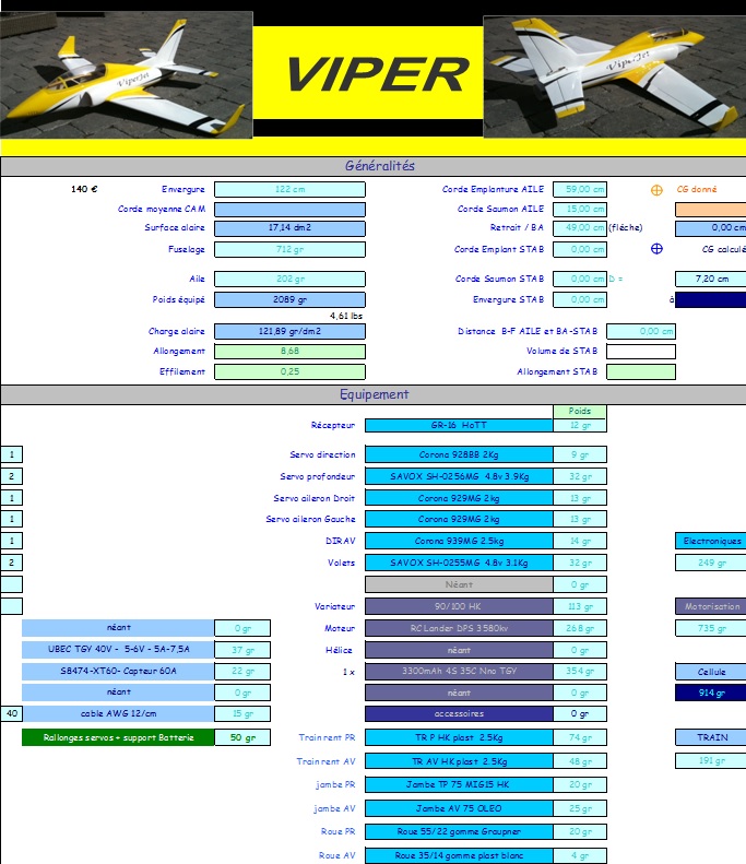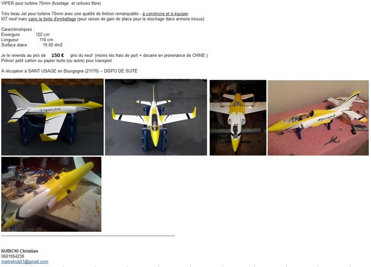 Re: (VENDS) VIPER neuf - fus fibre - env 122cm pour turbine