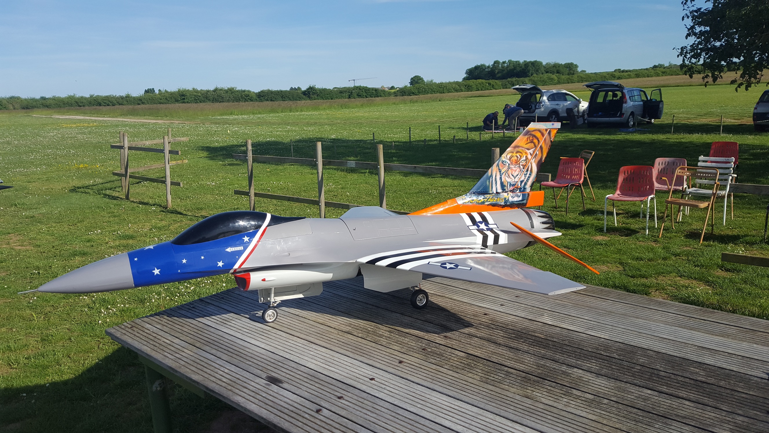 Me voici de retour sur le forum, je fais parti de l'équipe de Bourges. Notre terrain étant en herbe et une zone de vols assez petite, je me résoudre tristement à vendre mon F16 FEJ qui ne vole pas assez. Il n'a que 5 vols. Il est en parfait état et vole super bien. Parametrage Ailvon.
