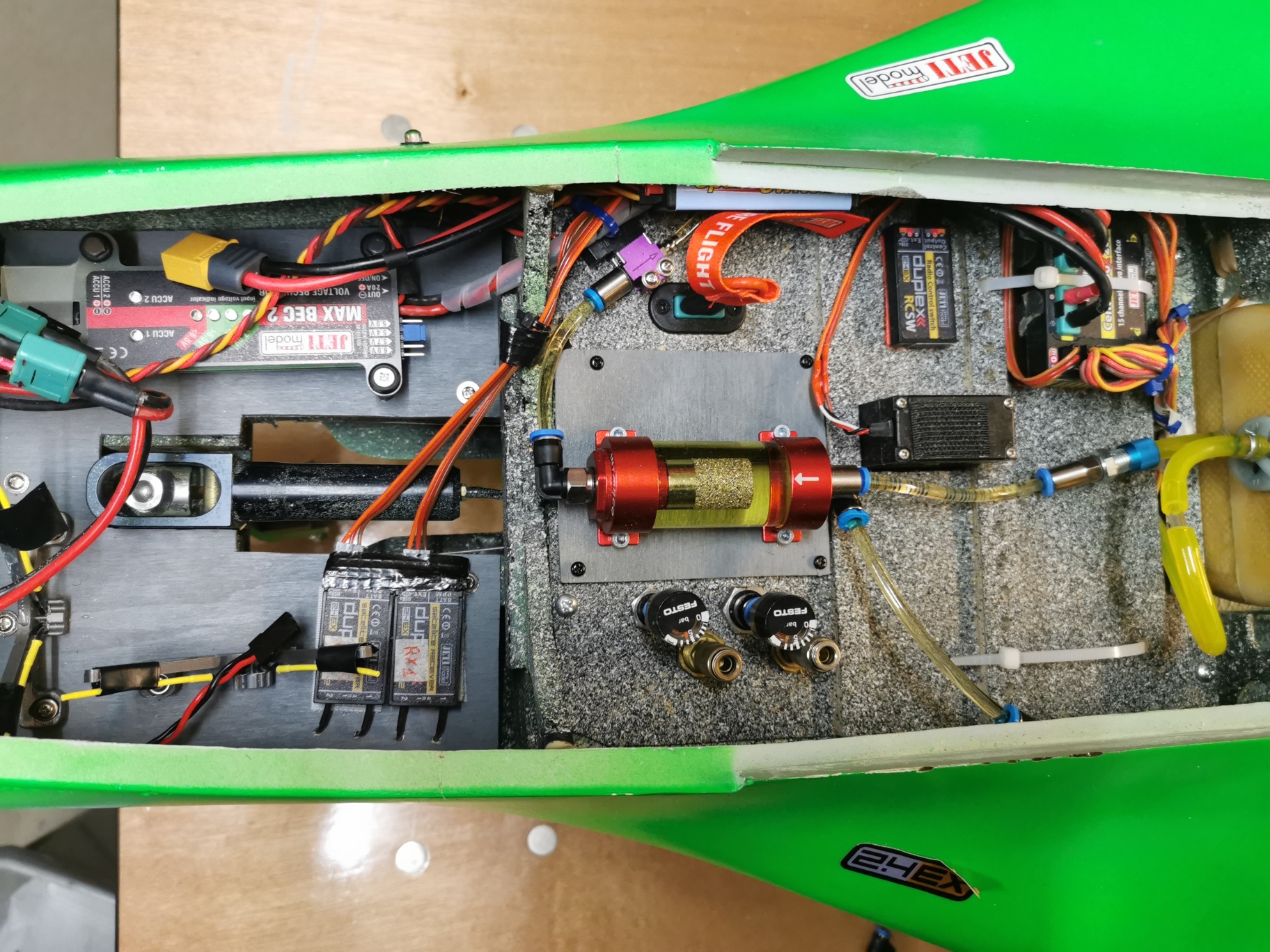 Je revends un phœnix qui a déjà pas mal volé mais est en état correct.Il a été repeint en vert Fluo pour plus de visibilité. Actuellement il est complet avec servos et réception jeti mais sans turbine. La réception jetibox 200 et le dual bec jeti avec les deux batteries peuvent rester à bord ou enlevé en fonction.
