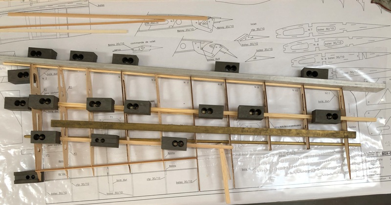 Pour ma part, pose des coffrages d’intrados seulement, de façon à garder le maximum d’accès pour pouvoir travailler tranquillement sur mes ajustages d’implantation et de course des volets et des ailerons.