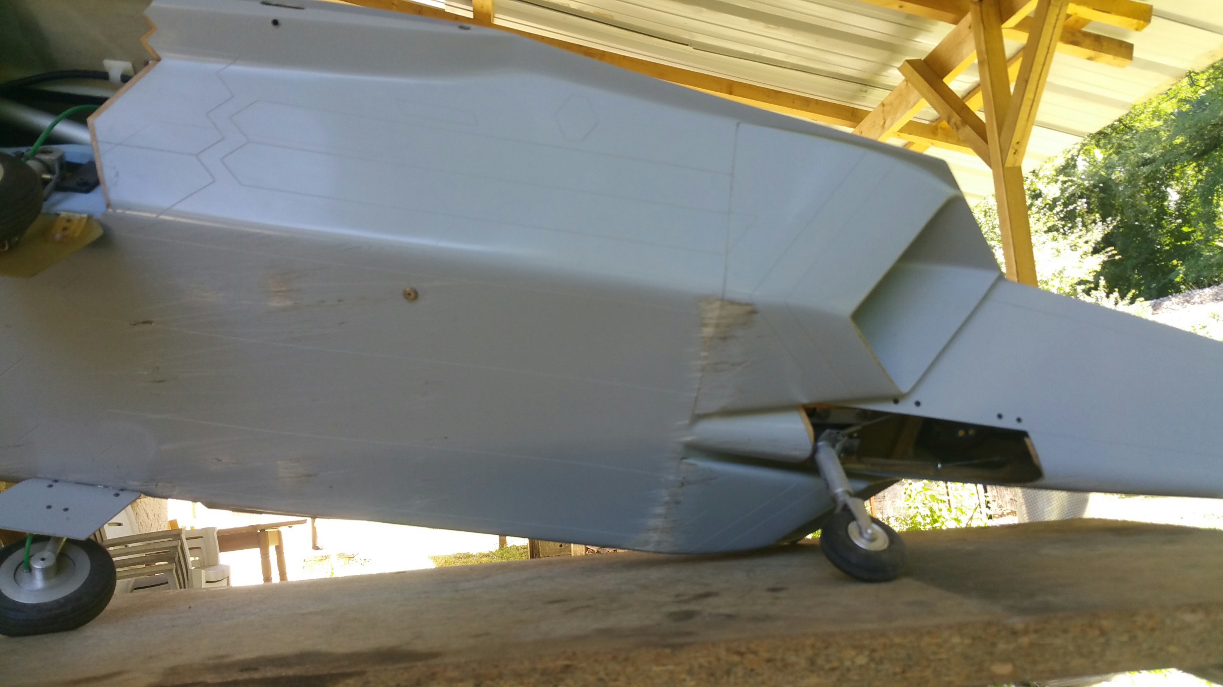 L' extrados de l avion est en état comme neuf, le dessous du fuselage est un peu rayé suite à l enclenchement de l interrupteur du train rentrant au lieu de celui du frein , à l atterrissage ! !!