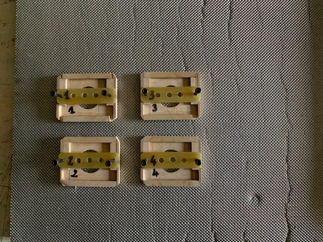 Pour ce faire j’ai réalisé 4 supports spécifiques qui seront collés sur la peau intérieur de l’extrados par l’accès prévu, avec démontage rapide du servo.