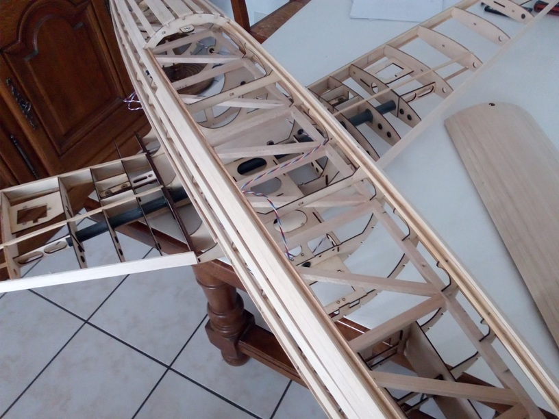 nervures en CTP 15/10 pour celles qui supportent les clés d'aile et 30/10 balsa pour les autres. Semelles longerons en pin 6x3.Coffrage en 15/10 Balsa plume.
