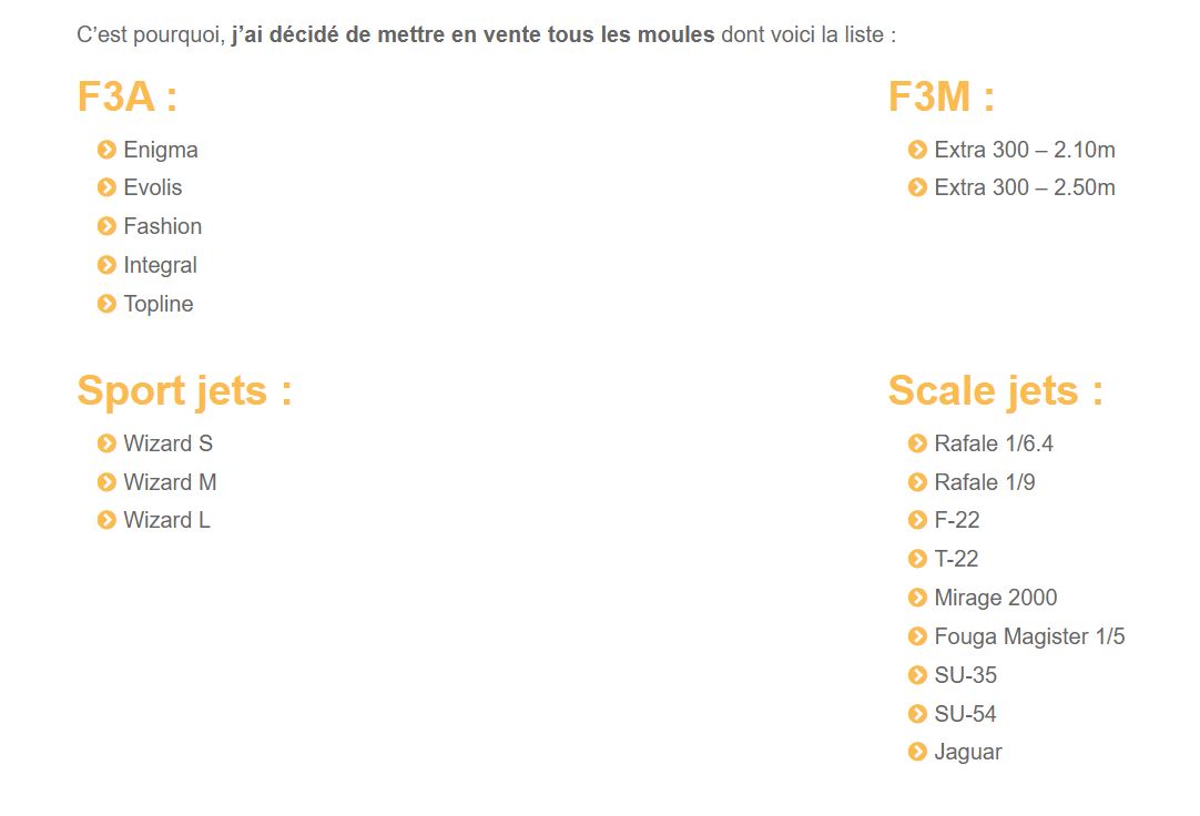 Pour ceux qui seraient intéressés ZN Line vend ses moules de jet et de F3A