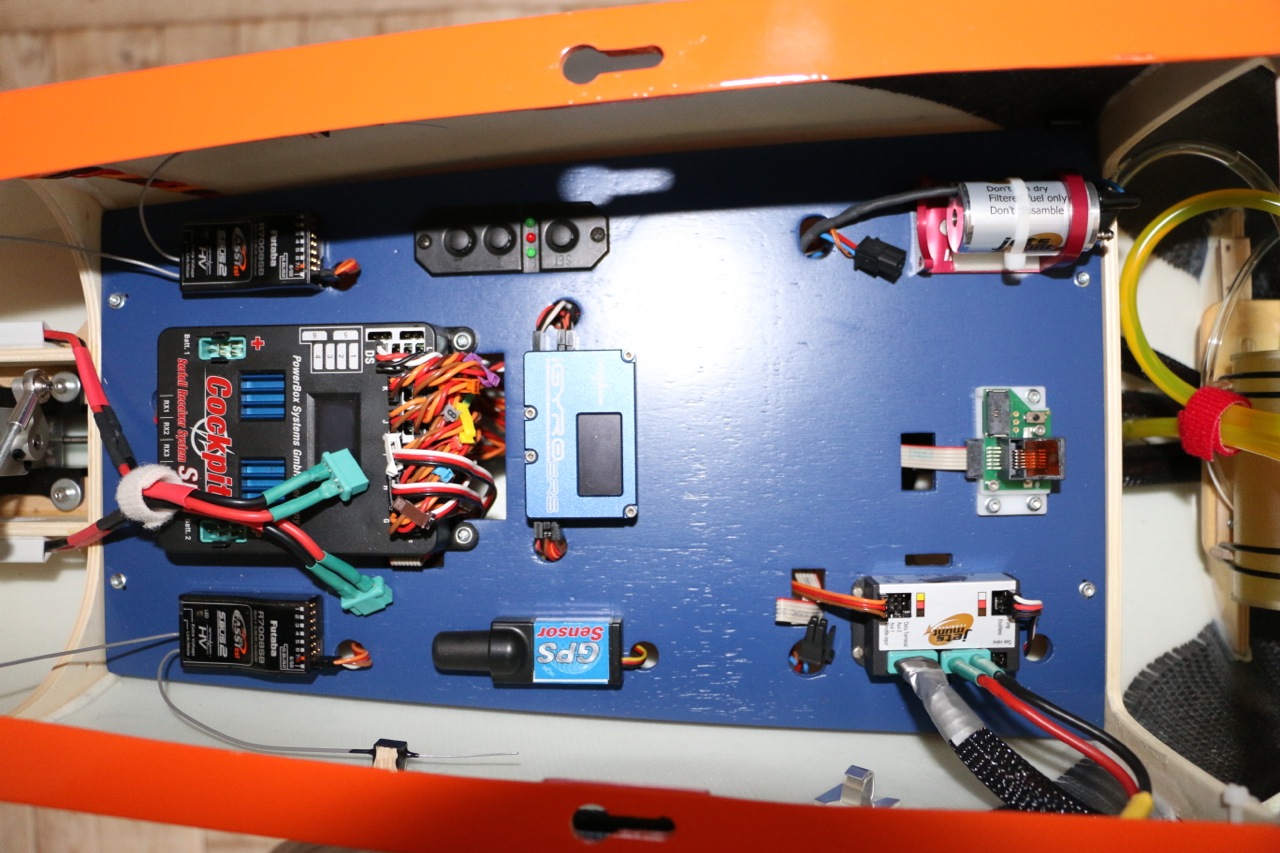 Le iGyro et la powerbox sont du même fabricant bien connu PowerBox Systems, j'ai un iGyro sur un M2000 et j'en suis très satisfait mais je n'ai pas encore exploré toutes les possibilités et réglages possibles. C'est un gyro 3 axes (aileron, profondeur et direction), je qualifierais plutôt haut de gamme.