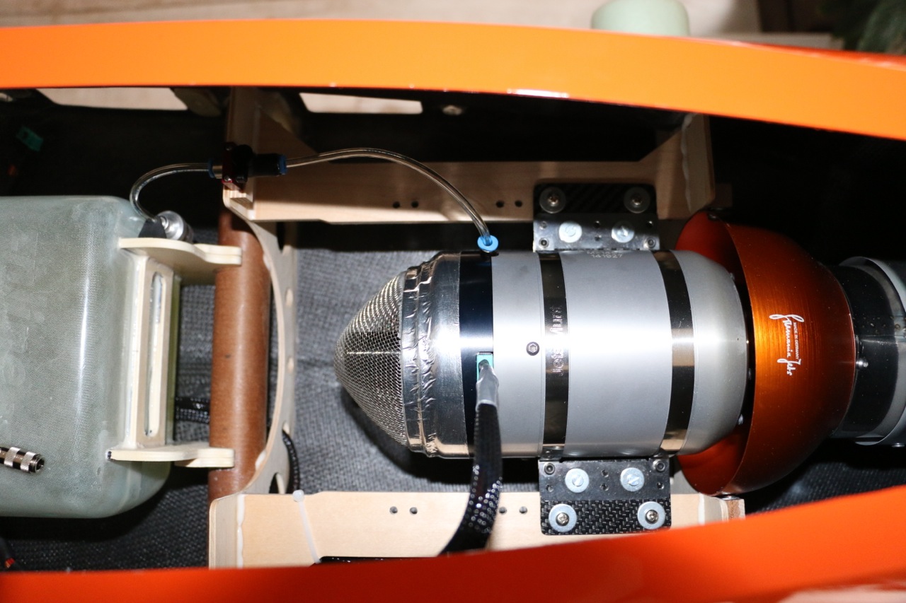 Reprise du projet, j'ai temporairement (ou définitivement ?...) remplacé mon JetCat 140RX par un Jets Munt 140XBL. Voir adaptation en photos ci-dessous.