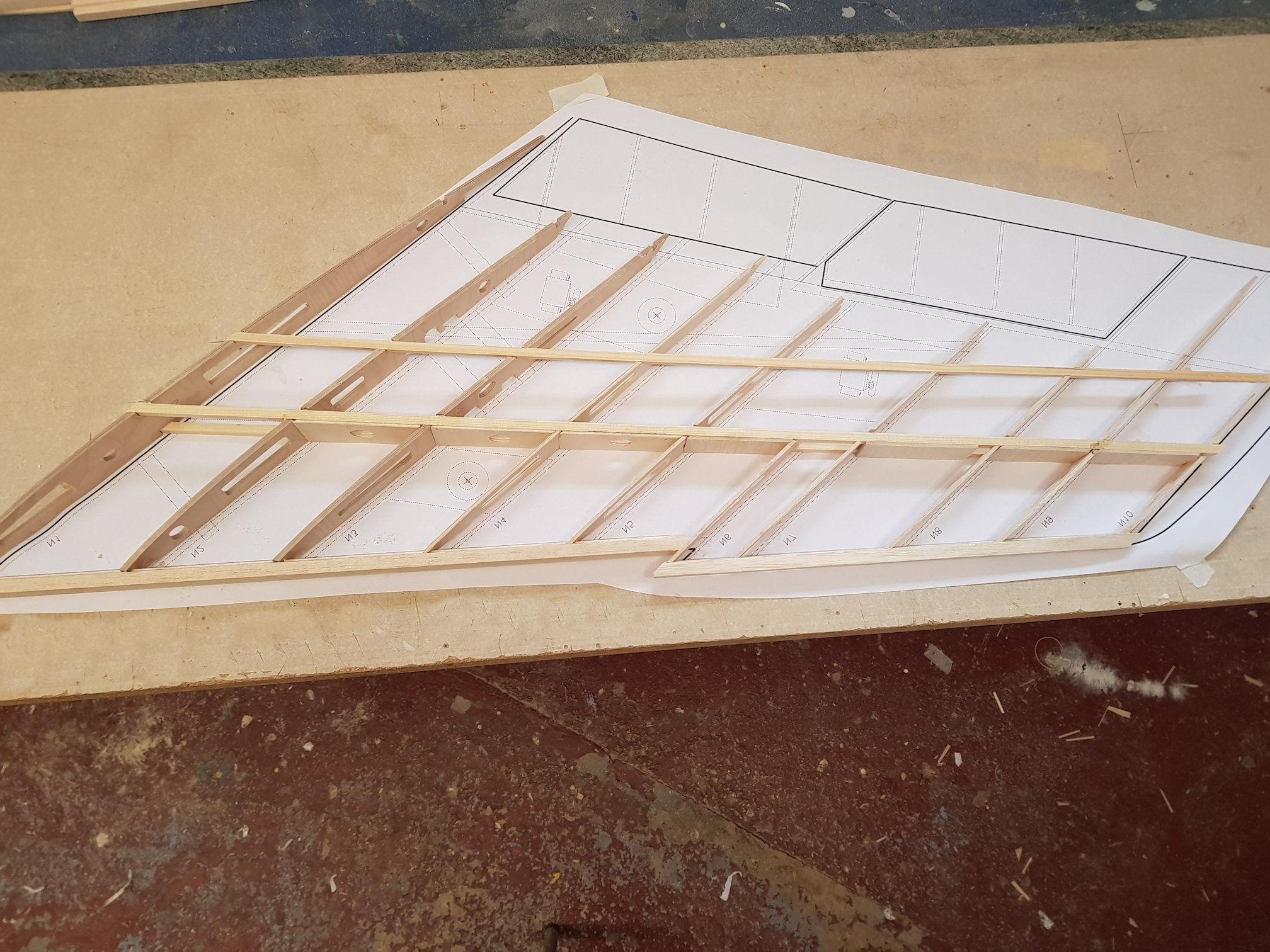 Apres le fuselage la premiere aile en chantier