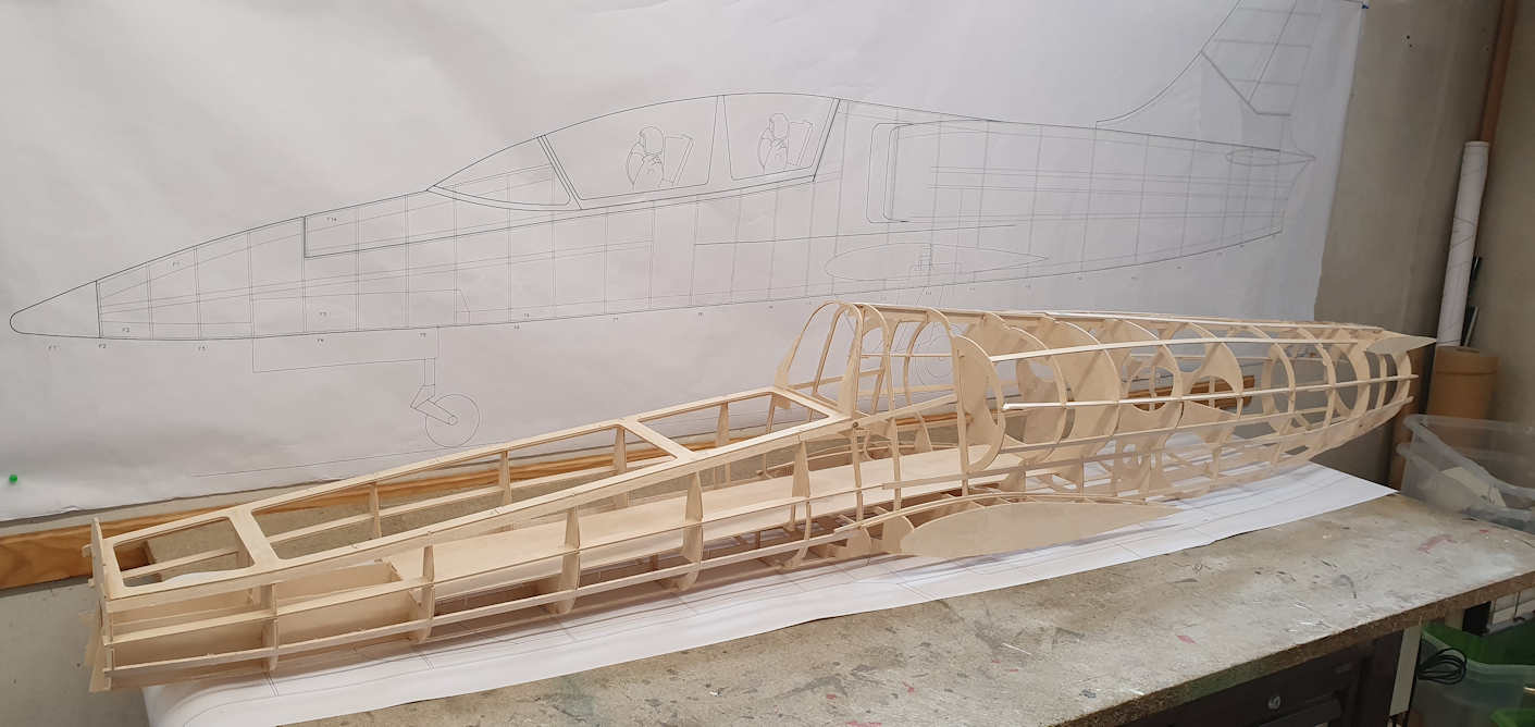 Une partie de l'ossature du fuselage assemblée sans le nez, poids de l ensemble 1870 grammes.
