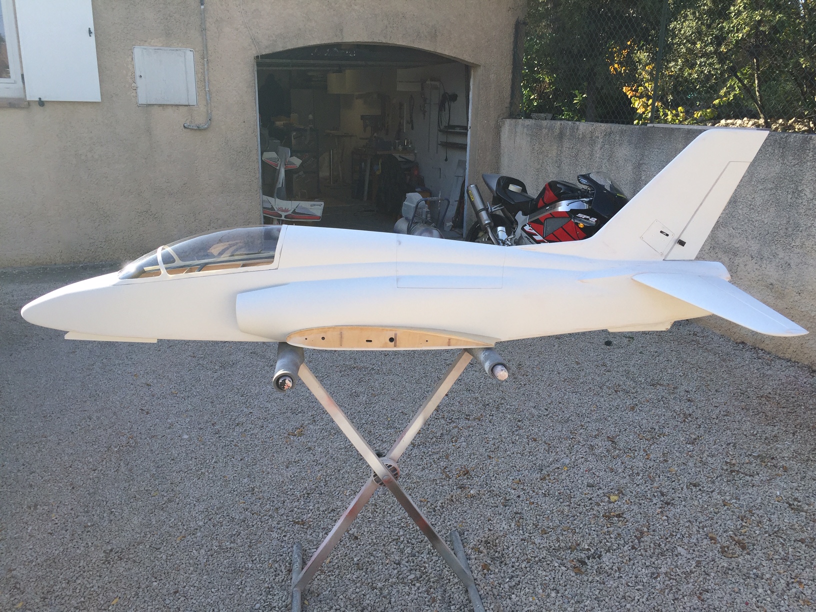 Bonjour à tous, et merci Camilodo pour tes encouragements. Je poste moins en ce moment, mais je continue de travailler dessus assidument...le truc c est que j ai eu une mauvaise nouvelle les jambes de trains que j avais commendées ne se montent pas avec les roues que j avais aussi commandées un grand merci à Adrian d electron retract qui m a prevenu et nous avons donc trouvé une combinaison qui marche , sauf que ca va etre plus long de 15mm, je vais donc etre obligé de grignoter les nervures d emplanture pour laisser passer les roues en position fermé. J ai deja fait la modif sur l avant et les trappes avant sont terminées. Reception des jambes de train milieu de semaine prochaine. En attendant je fibre le dernier bout de fuselage qui restait et demain je peserai le fuselage nu mais complet (vide sauf servos de derive, stab, trappes avant soit 5 servos) pour savoir ou j en suis question poids.