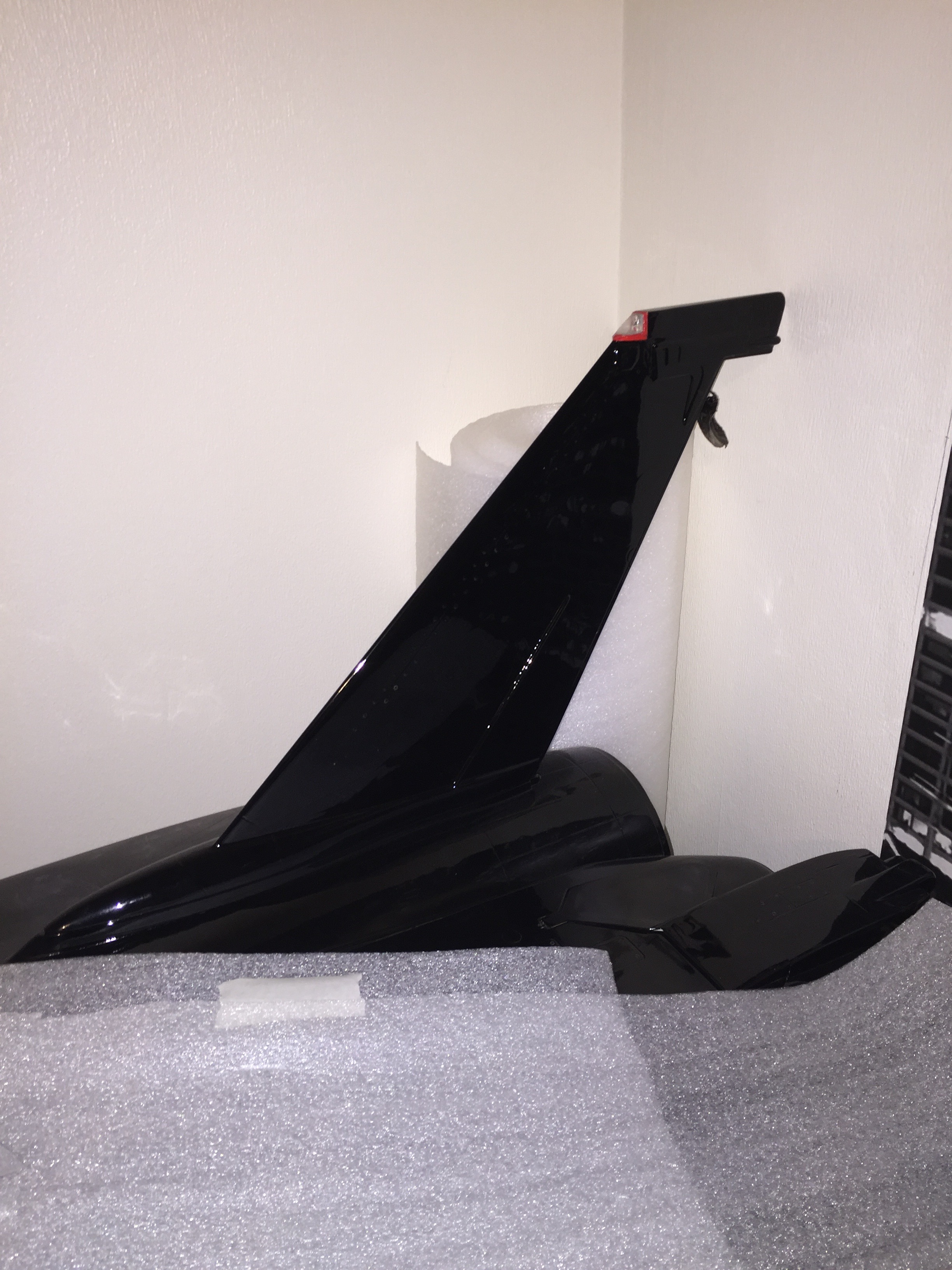 matériel très fiable : la peinture des ailles ,ailerons et dérives est enfin terminé . mise en peinture du nez qui recevra batteries ,affichage Powerbox , prises rapides fluide etc... et pour terminer je commence le masquage et ponçage de la partie sous le rabattement d'ailes pour peinture en "gris technique" commence a devenir black mais pas encore bunny