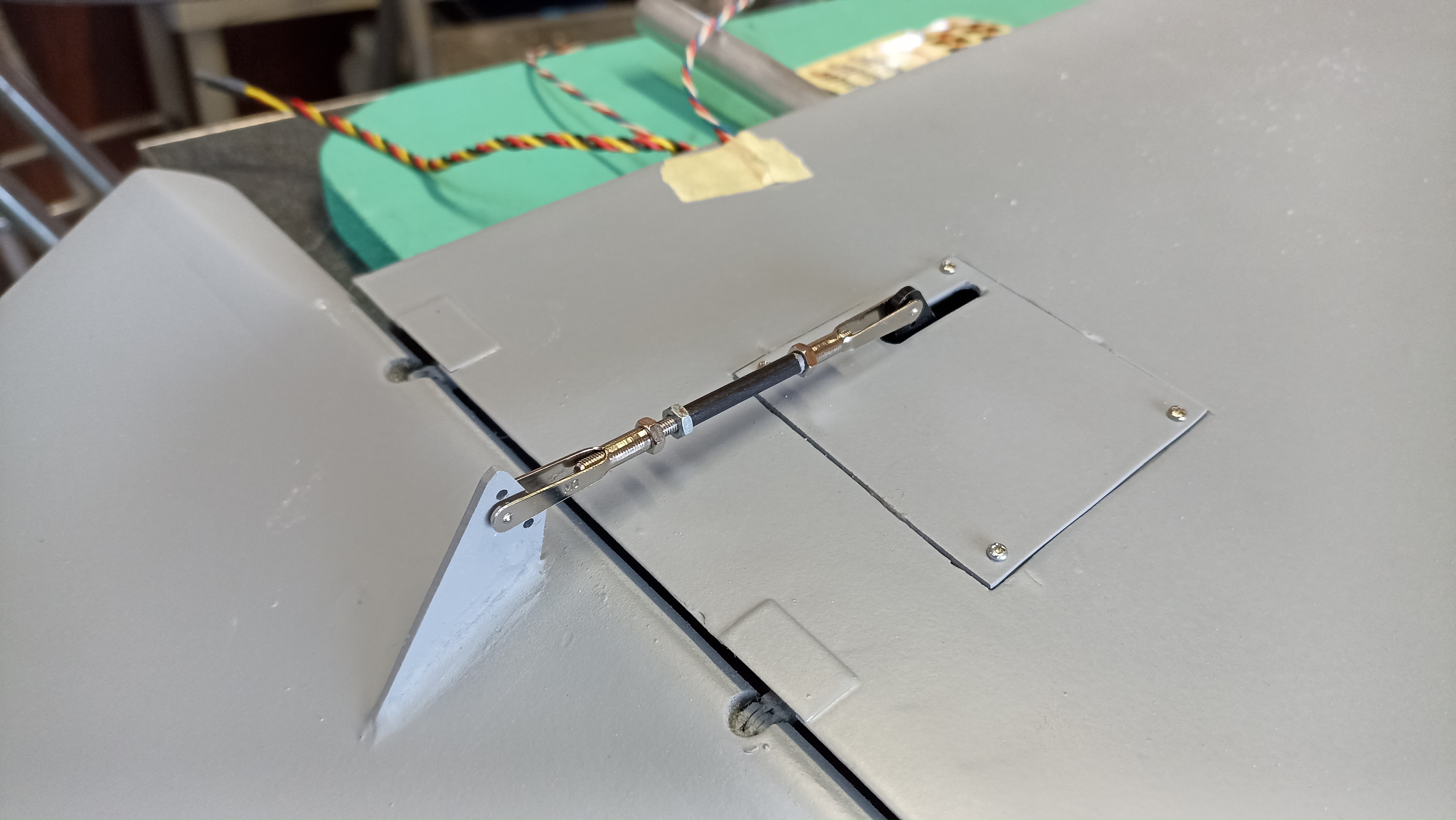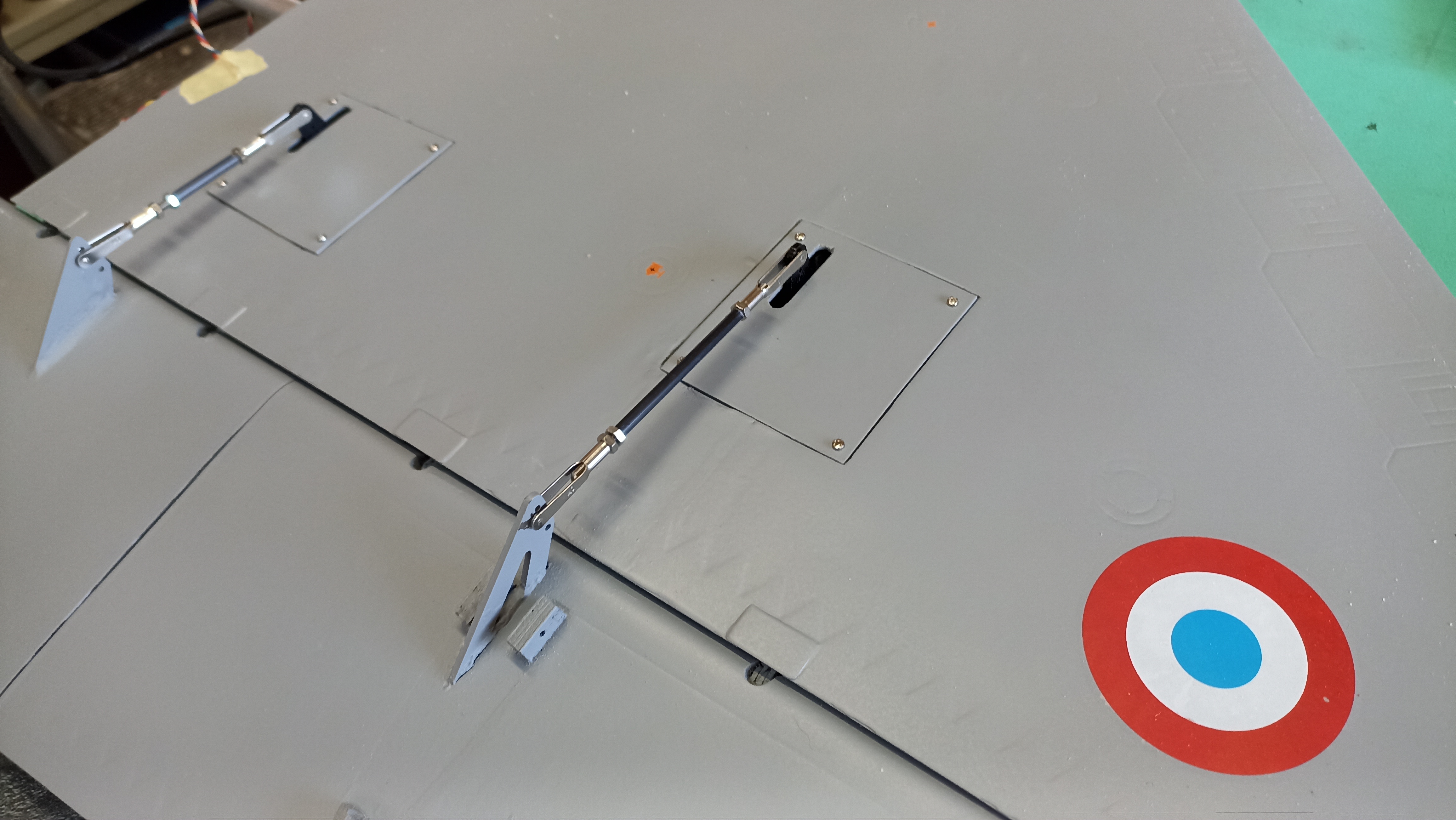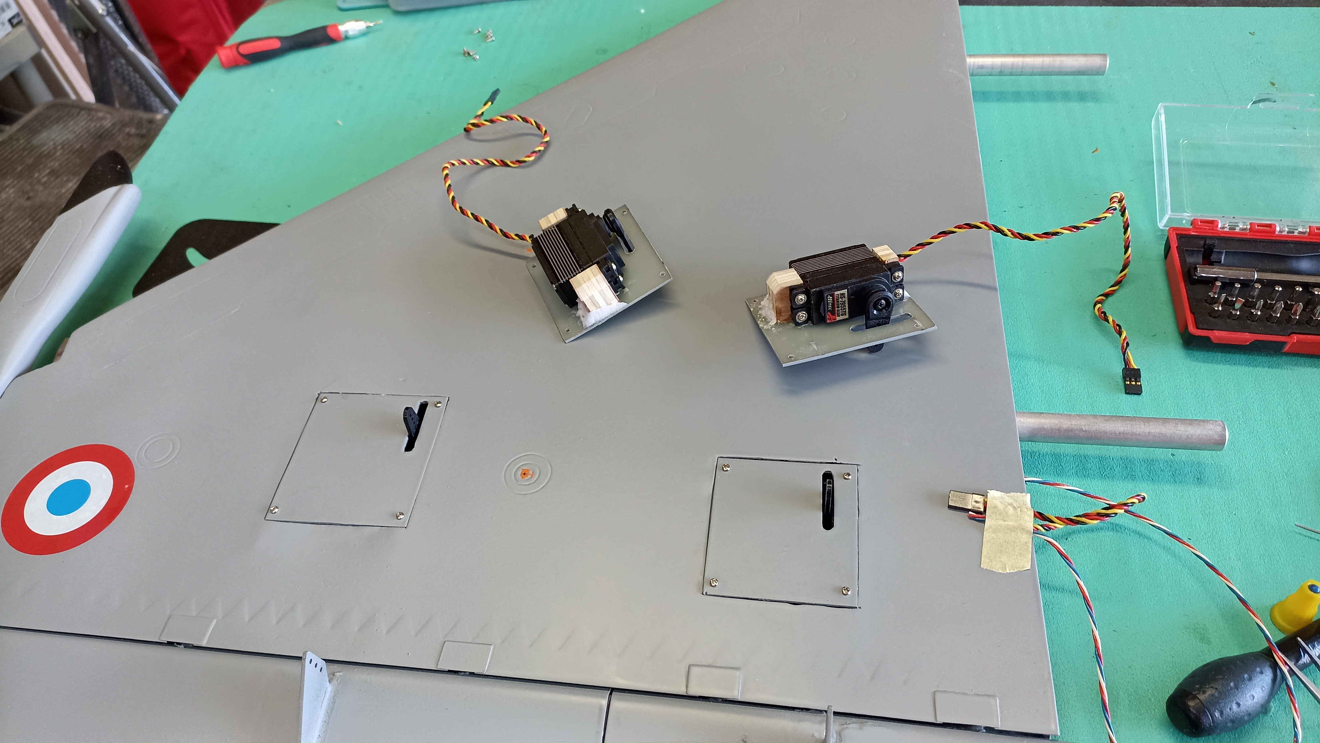 Après une bonne grosse pause reprise des travaux. Aujourd'hui j avais un peu de temps donc installation des servos d ailes et des commandes.