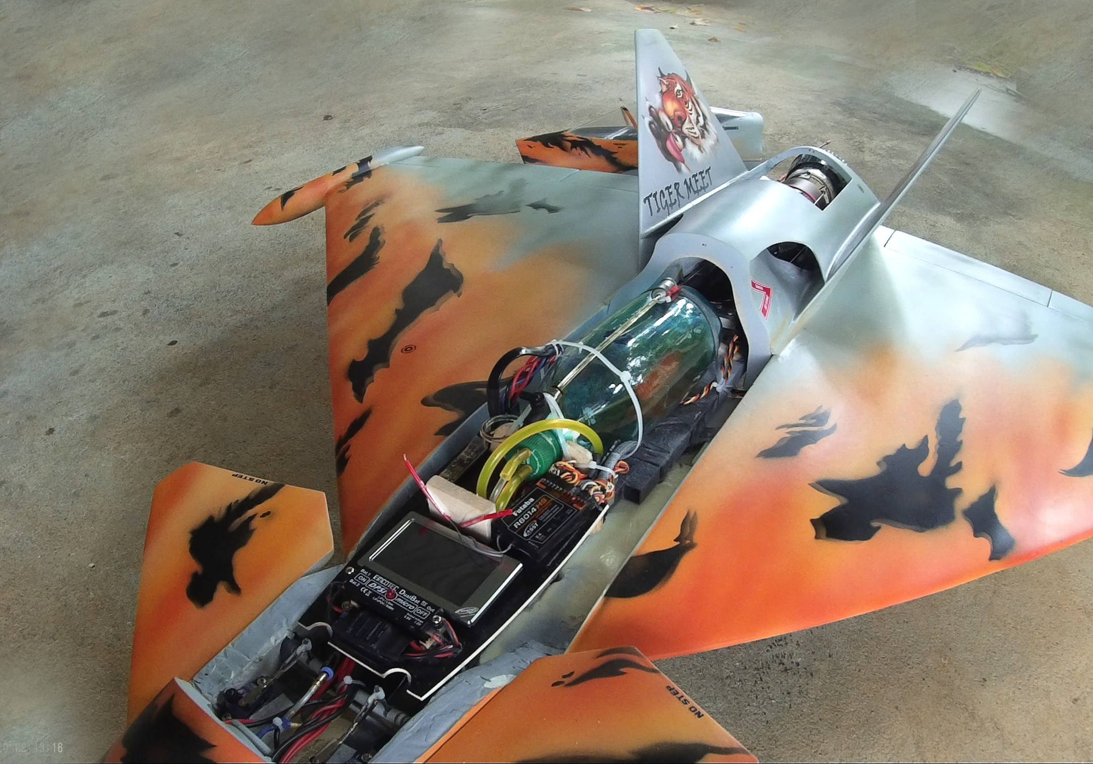 Dans l´ensemble ça c´est bien passé. Bien qu´il y a quelques petits défauts, la cellule devrait bien encaisser les contraintes du vol. Seul bémol, le poids final avec le plein de kero avoisine les 9kg. Ce qui n´a pas arrangé les choses, c´est que le centrage m´a obligé a rajouté 350 gr de plomb dans le nez en plus des 400 gr de batteries. Avec une surface de 92 dm2, sa charge a l´air reste acceptable avec 100 gr dm2, par contre la Kingtech 6 kg risque d´etre un peu juste.